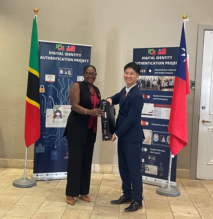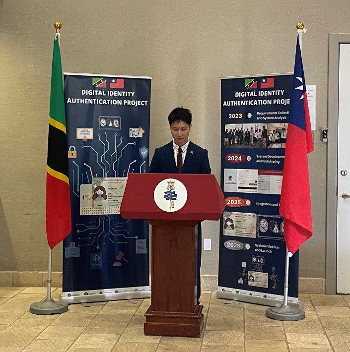 為推動聖克里斯多福及尼維斯數位政府發展,本館與國合會駐聖克里斯多福及尼維斯技術團於11月18日與克國資通訊部共同舉辦「數位身分認證系統軟硬體安裝研討會」。台灣系統開發商(資拓宏宇、中華電信與宏通資訊)亦與克國多個部會共同出席。本次會議回顧三年成果,並針對伺服器建置、端點安裝、系統測試等議題深入交流。下午活動於財政部大廳展開,本館鍾賢玉二等秘書代表陶令文大使致詞表示,台灣持續協助克國打造以數位經濟與多元公共服務為核心的電子化政府,並承諾持續為克國人民福祉努力。克國資通訊部次長 Cheryleann Pemberton 亦致詞表示,E-ID 系統為國家數位轉型關鍵,並感謝台灣長期支持。典禮最後完成象徵性設備移交,象徵本計畫正式邁向下一階段。