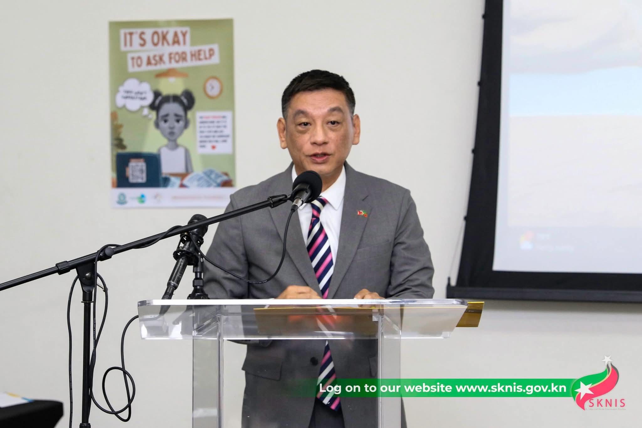 Prime Minister and Minister of Health Hon. Dr. Terrance Drew, Deputy Prime Minister and Minister of Education Hon. Dr. Geoffrey Hanley, and Ambassador Edward Ling-wen Tao attended the event and delivered remarks highlighting the importance of mental health for social development and the well-being of young people.