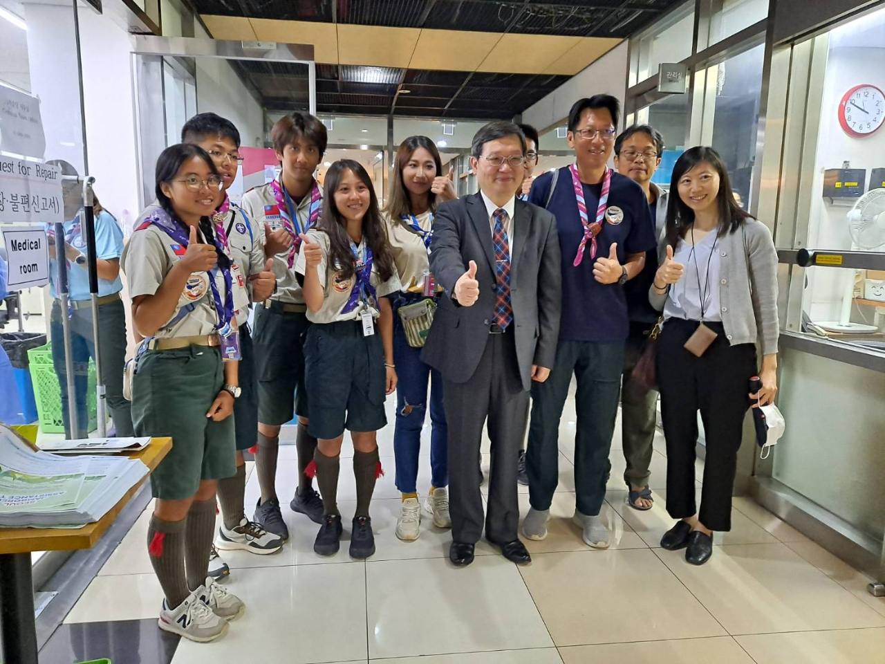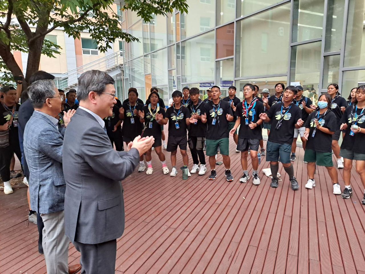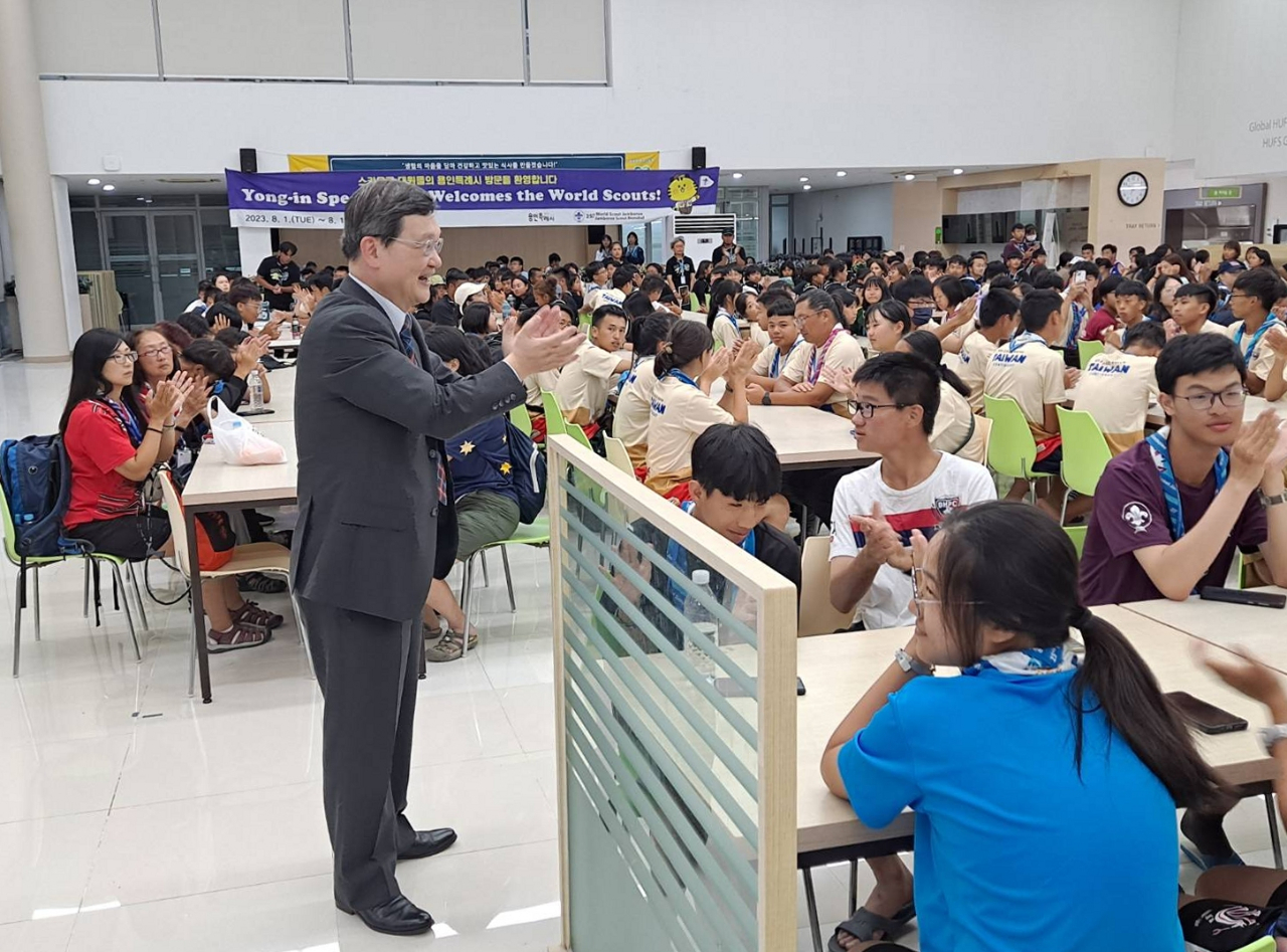 梁大使感謝龍仁市及外大校方對我團員們在住宿、飲食等各項生活所需及營外活動提供協助,並勉勵及慰問我童軍團員,希望大家過得充實、平安健康。