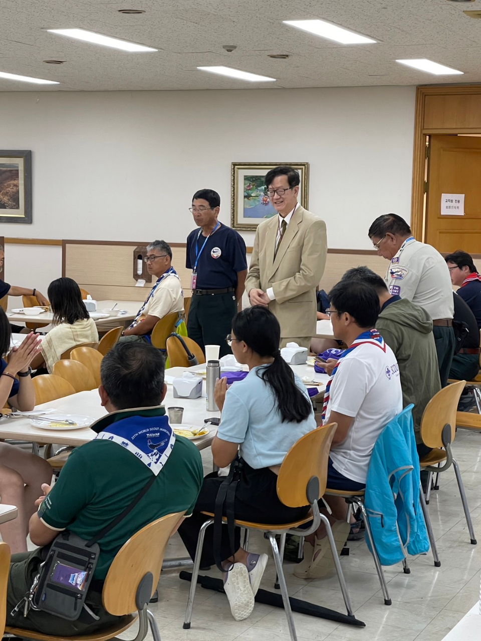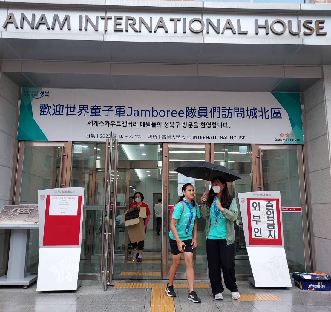 「第25屆世界童軍大露營」受卡努颱風影響,決定提前拔營,安排前往韓國各地避颱。我童軍團安排至鄰近首爾的韓國外國語大學(龍仁校區)、首爾市立大學、世宗大學和高麗大學,本處安排在不打擾我童軍團既定行程前提下,於8月9日傍晚和10日上午分別四間學校慰問及關心,並提醒做好防颱準備。