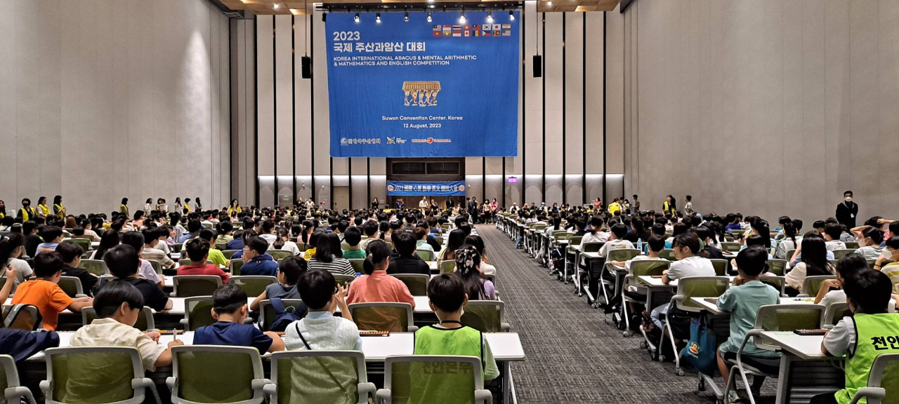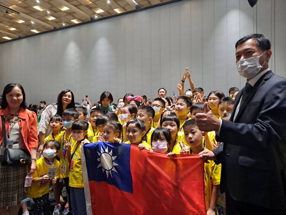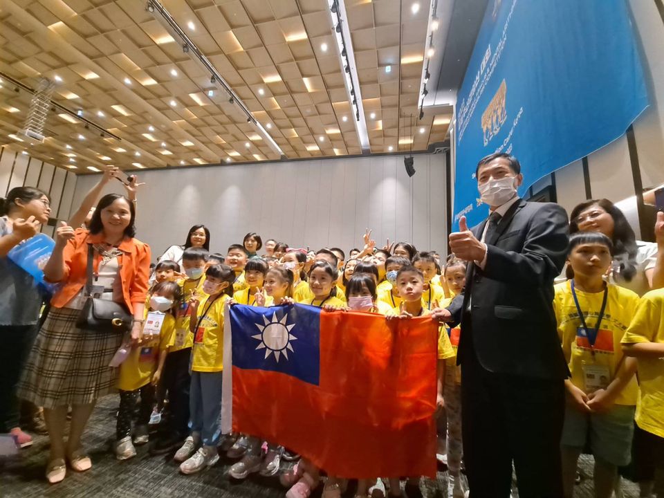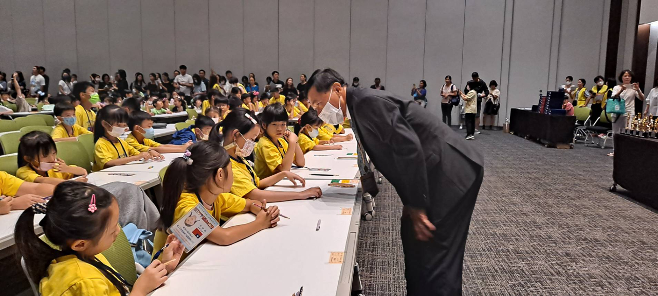 2023韓國國際心算數學英文競技大賽,最近在韓國水原會議中心舉辦,本代表處教育組鄭正凱組長到場授旗,並為參賽學生勉勵加油打氣。
