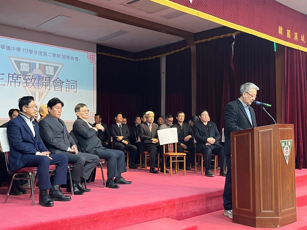 韓國漢城華僑中學2月20日於大禮堂舉行113學年度第2學期開學典禮,由校長于植盛主持,駐韓國代表部代表梁光中偕僑務組副組長杜慧音、漢城華僑中學理事會理事長譚紹榮、首席副理事長崔愛英、漢城華僑協會會長李中漢等來賓出席見證。