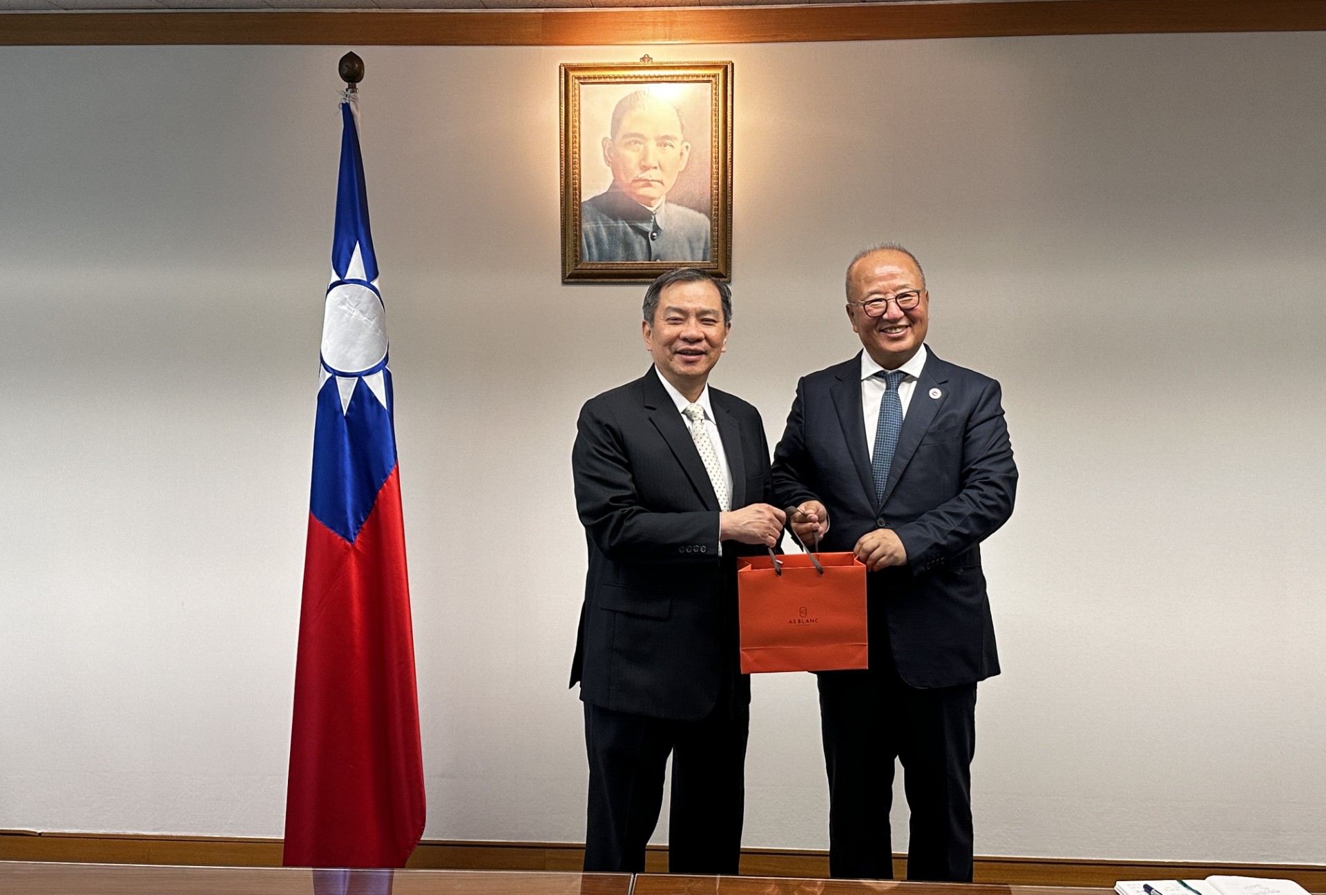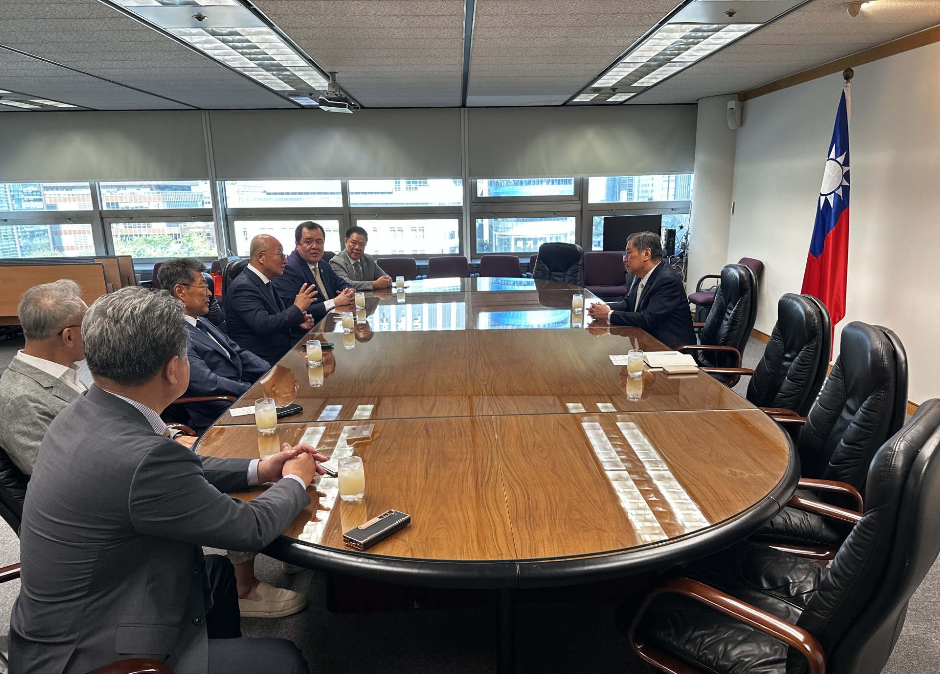 韓國中華總商會會長袁國棟、監事長王仁治、常任副會長鄒新強等一行6人於8月26日拜會駐韓國代表處,由代表丘高偉親自接見,僑務組副組長杜慧音陪同,席間就深化雙方交流合作熱烈討論,期盼共同促進臺灣產業在韓國之發展性與能見度。