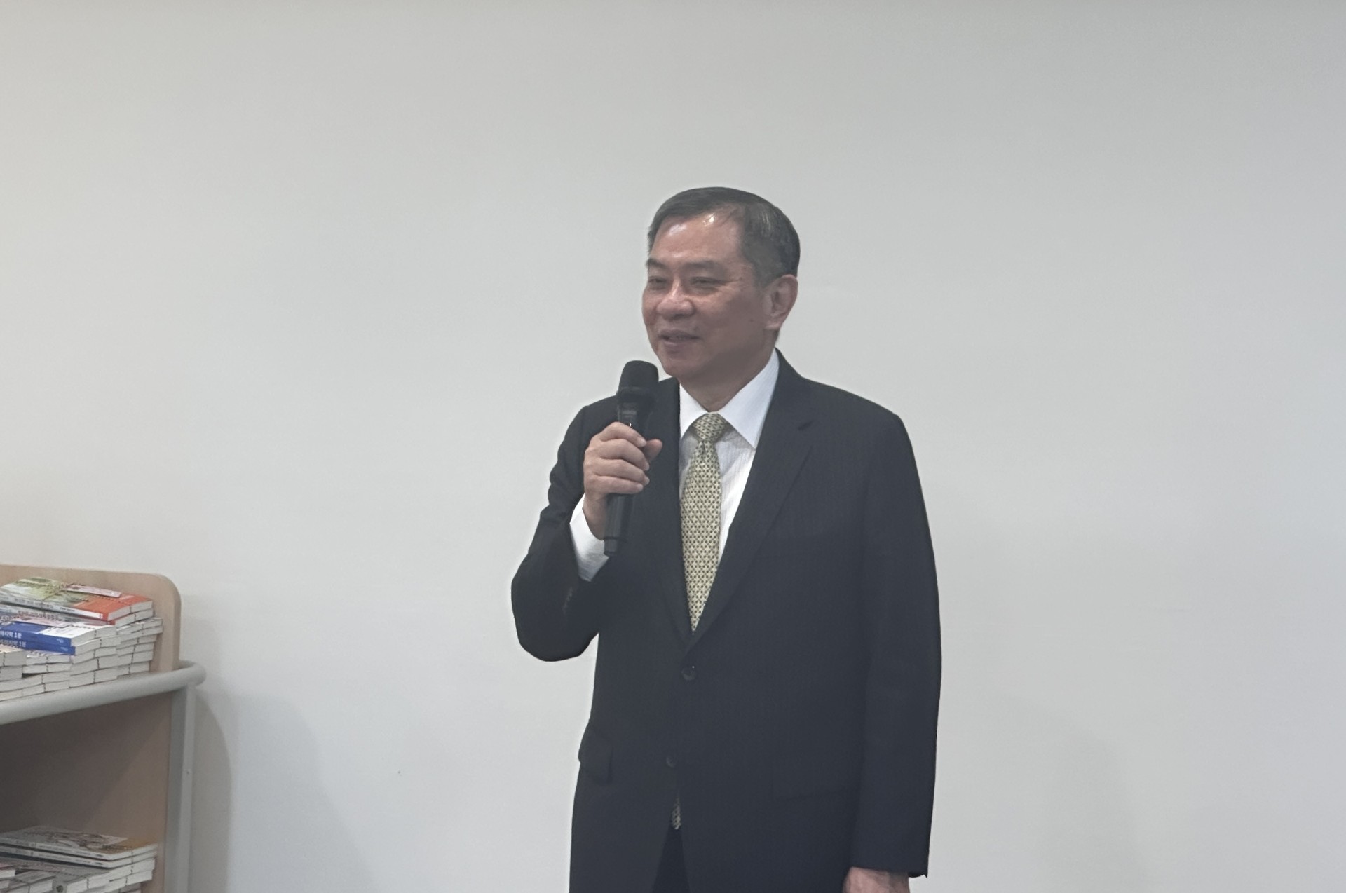林治有理事長首先致詞感謝仁川市教育廳的大力支持,促成該校重新設計圖書館,打造一個以學生為主體的閱讀空間,他提及剪綵儀式亦由該校學生籌劃進行,充分展現學生統籌執行能力。都成勳接續分享仁川市教育廳的「閱讀、行走及寫作」教育理念,鼓勵學生透過這三項訓練,積極培養自我主導權、創意思想及解決問題等各項能力。