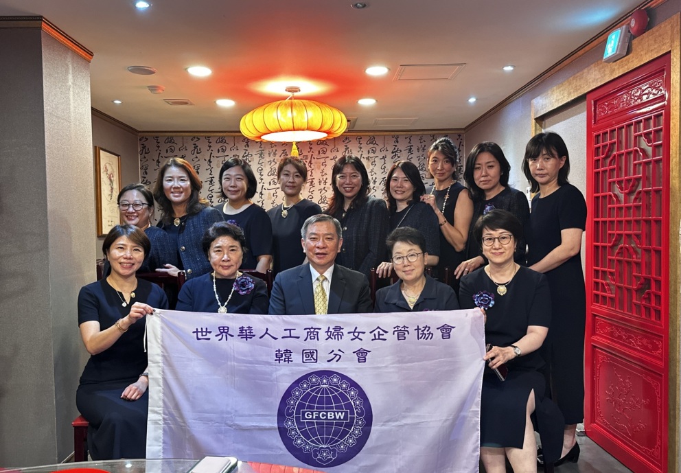 駐韓國代表處丘高偉代表在僑務組杜慧音副組長陪同下,9月24日晚間與世界華人工商婦女企管協會韓國分會餐敘聯絡情誼,鼓勵大家「心懷臺灣,服務僑界」,現場交流氣氛熱烈。