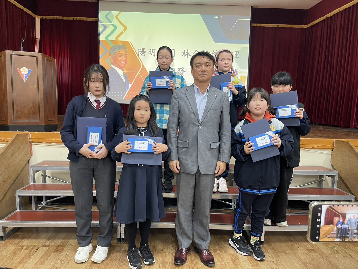 重視環保的陽明(韓國)株式會社因去年捐贈15台電腦供學校學生使用,因而與學校結下緣分,是日林金堆社長特受邀出席活動,並於會中頒發環保獎狀與禮物予在環保實踐上表現優異的同學,藉此鼓勵學生從小養成環保意識,積極投入綠色實踐行動。校方表示,本次活動在駐韓國代表處及臺灣企業領袖的共襄盛舉下圓滿成功,不僅豐富了學生的精神食糧,更透過專業分享與文化交流,為學子開啟了更廣闊的國際視野。