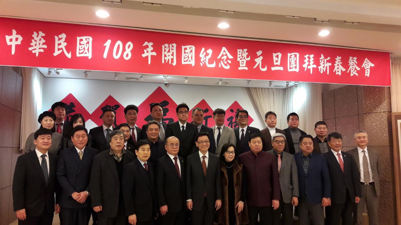 108年1月1日上午11時漢城華僑協會舉行「中華民國開國紀念日暨108年元旦團拜餐會」,駐韓國代表處唐殿文代表夫婦及館員、漢城華僑協會李寶禮會長及理事,以及來自永登浦、水原、議政府的僑領共130多人參加。