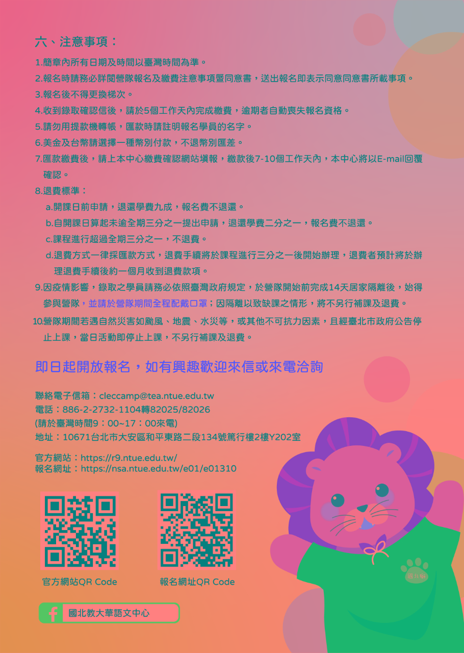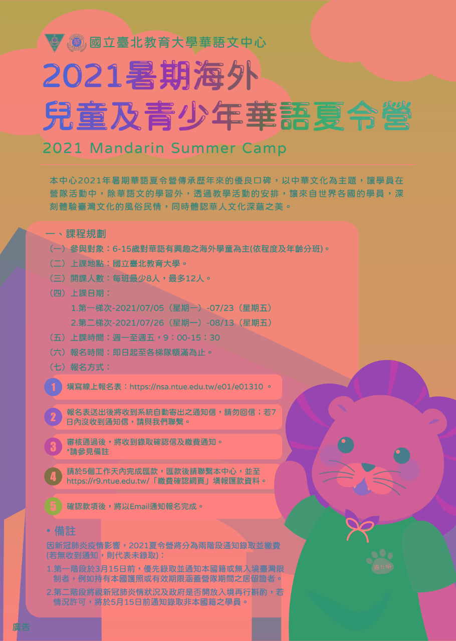 國立臺北教育大學華語文中心2021暑期海外兒童青少年華語夏令營 - 駐韓國台北代表部 Taipei Mission in Korea ::: 跳到主要內容區塊