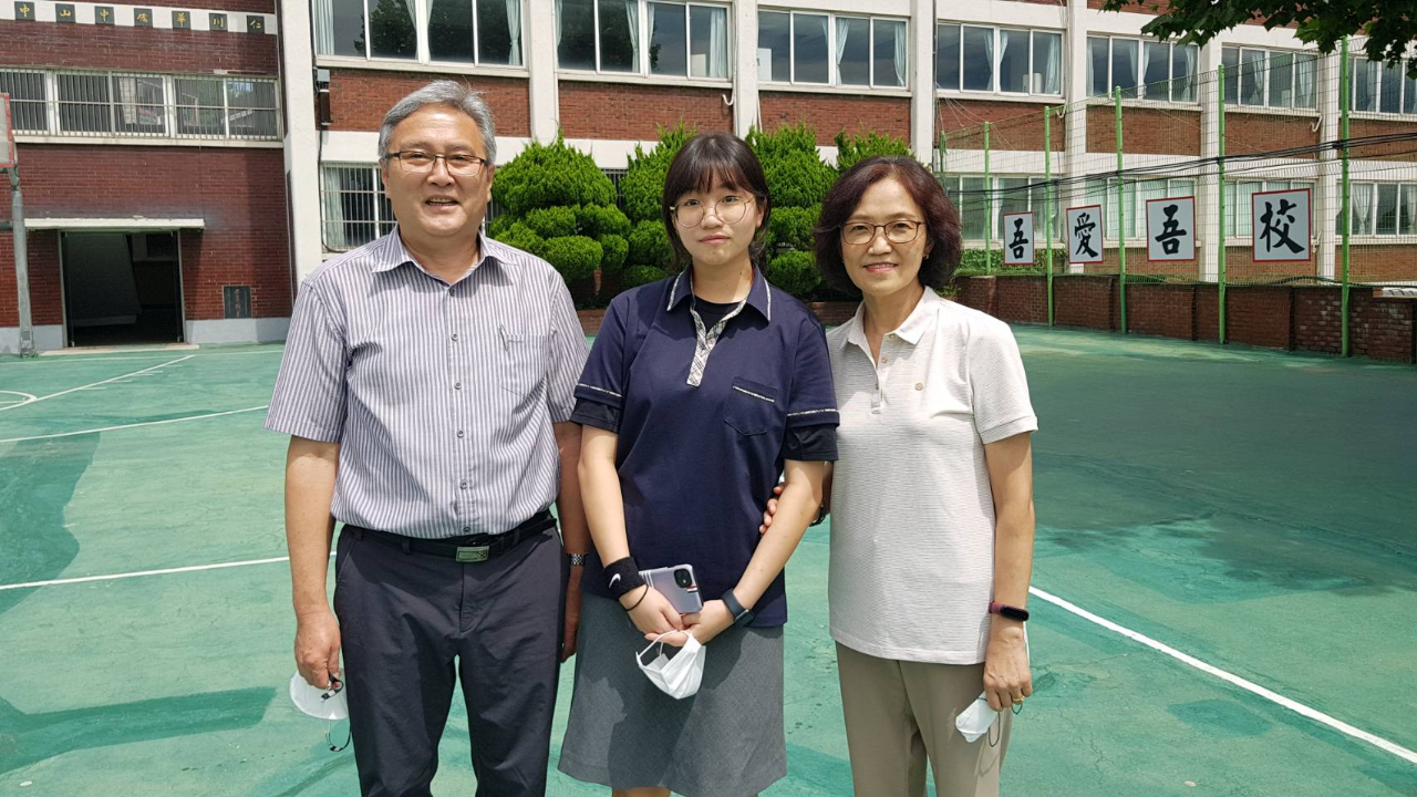 張禮蘭與孫承宗校長(左)及王淑英(右)老師合影