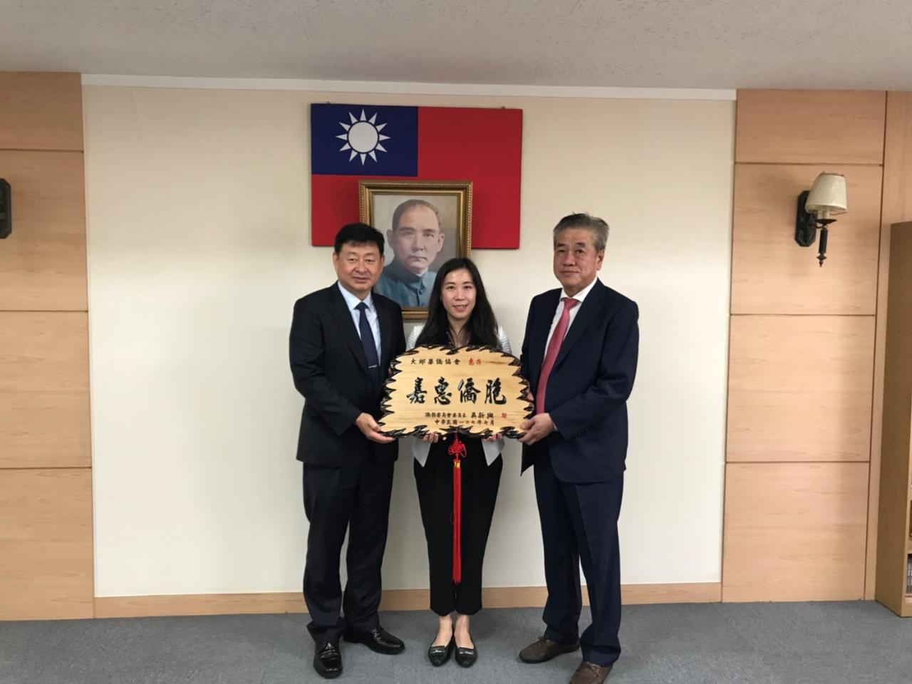 大邱華僑協會第29屆新任會長臧汝林、僑務委員孫寶忠(兼協會名譽會長)、首席副會長、理事等幹部於9月4日來本處拜會吳處長。吳處長祝賀臧會長順利連任,並代表僑委會委員長致贈匾額及賀函。雙方就協會與本處未來工作重點項目及僑胞關切事項進行交流。
