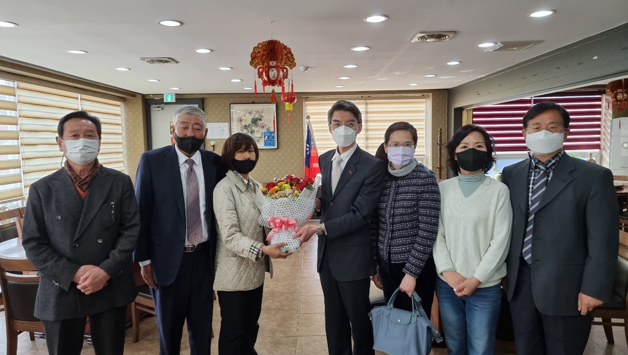 本處處長林晨富夫婦於4月15日前往慶尚南道昌原市拜訪馬山昌原華僑協會,受到協會會長常仁傳及僑領們熱烈歡迎。 林處長首先感謝馬山僑領在疫情期間專程與晤及熱忱接待,繼表示,初到韓國月餘,為深入瞭解韓華僑民現況,近期陸續安排拜訪轄內重要僑社,並與各地僑領及僑民面對面座談,傾聽僑胞心聲,未來將一本初衷,持續提供僑民最優質的服務,同時期盼僑界先進續予駐處支持與協助。 馬山昌原華僑協會會長常仁傳代表僑民歡迎林處長到任履新並表示,馬山僑社規模較小,然僑領及僑民們團結和睦,推動僑社永續發展不遺餘力。繼說明馬山僑情現況、僑民對中華民國之堅定愛國情操,以及馬山華僑小學前因生源不足而被迫關閉等情形。 林處長對馬山僑界忠貞愛國情操及協會幹部長期對僑社之無私奉獻深感敬佩,也特別轉達僑委會童振源委員長及外交部吳釗燮部長等我相關部會長官對馬山昌原僑胞之問候與關懷,雙方另就協會運作情形及僑民近況等議題交換意見,會晤歷時40分鐘,過程順利,圓滿結束。常會長熱情邀請林處長夫婦擇日再訪昌原與僑胞見面,以增情誼。