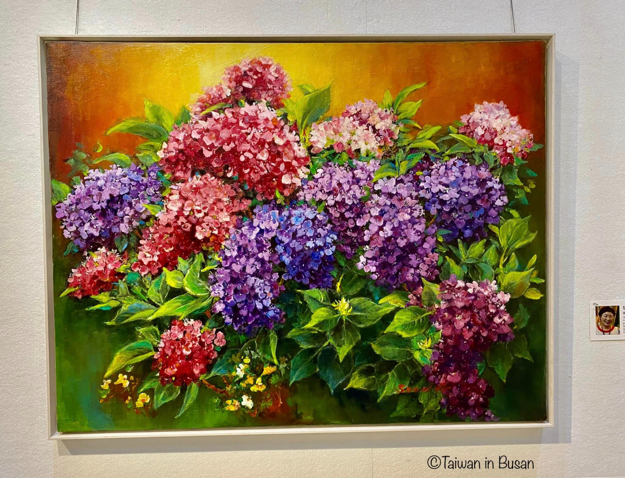 本屆展覽會共計邀請34名釜山藝術家、41名臺灣藝術家(名單請詳留言處)參與,聯合展出東洋畫、西洋畫、工藝品等。本處林處長夫婦偕同仁於10月28日傍晚前往參觀,獲釜山國際美術街藝術家協會前會長及總務長等熱忱接待,並陪同觀展及合影留念。