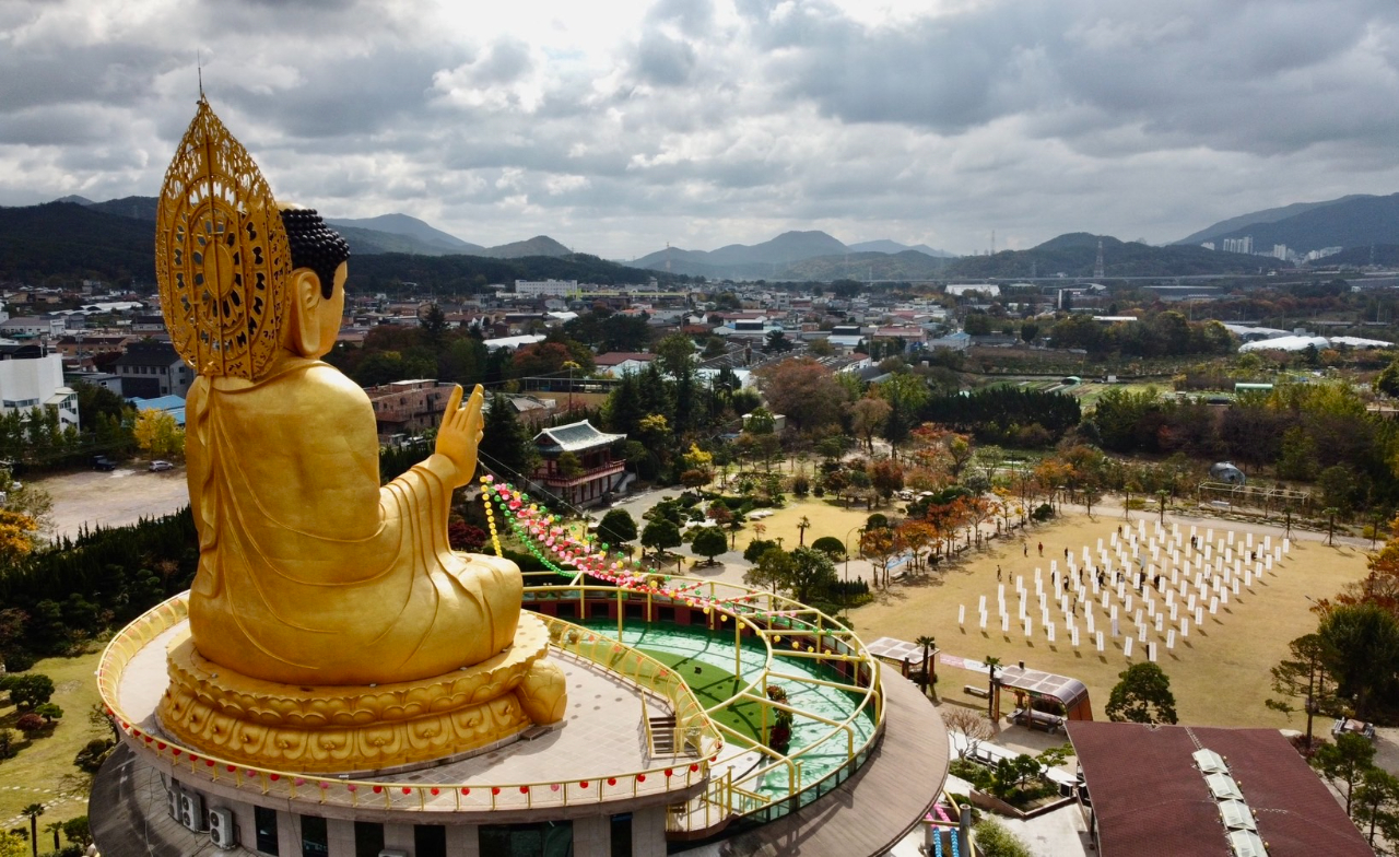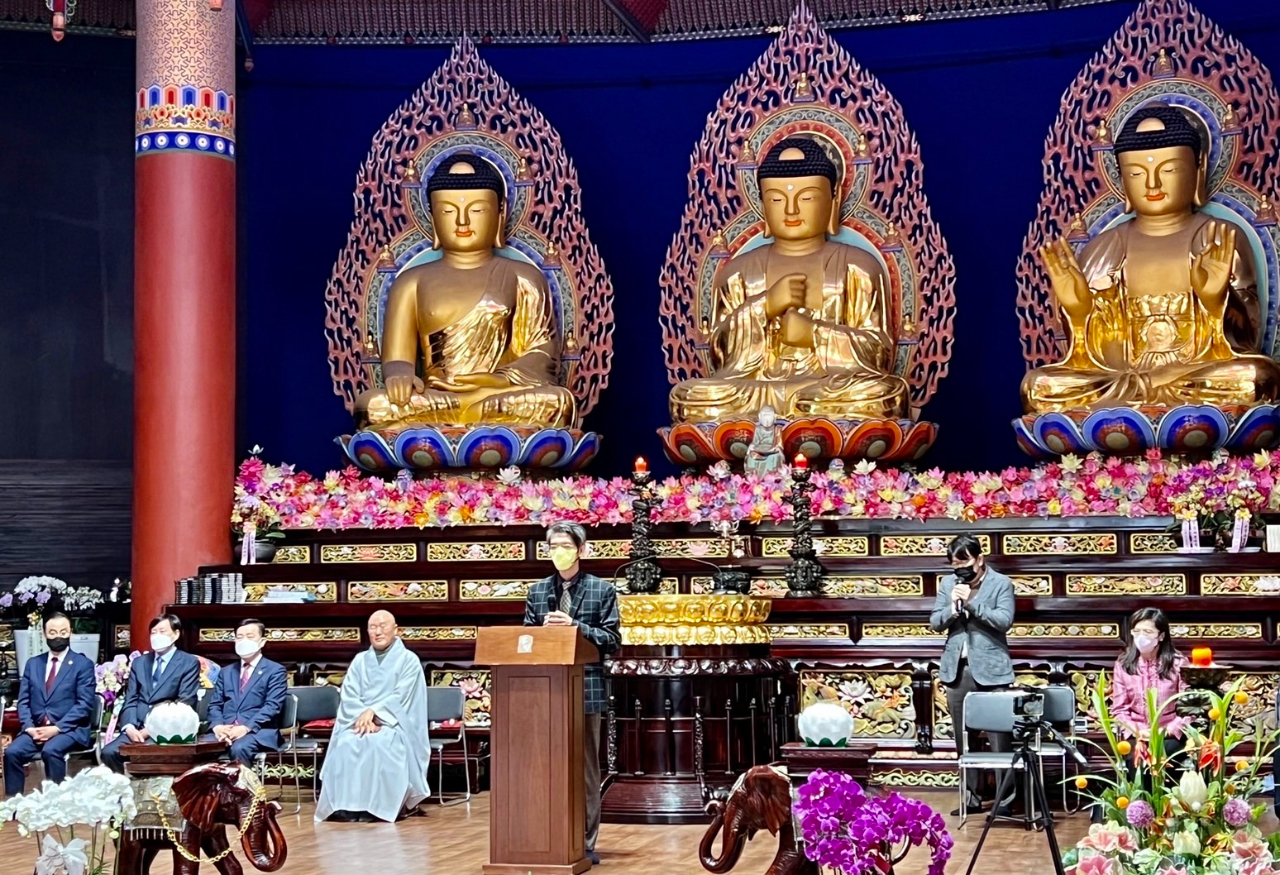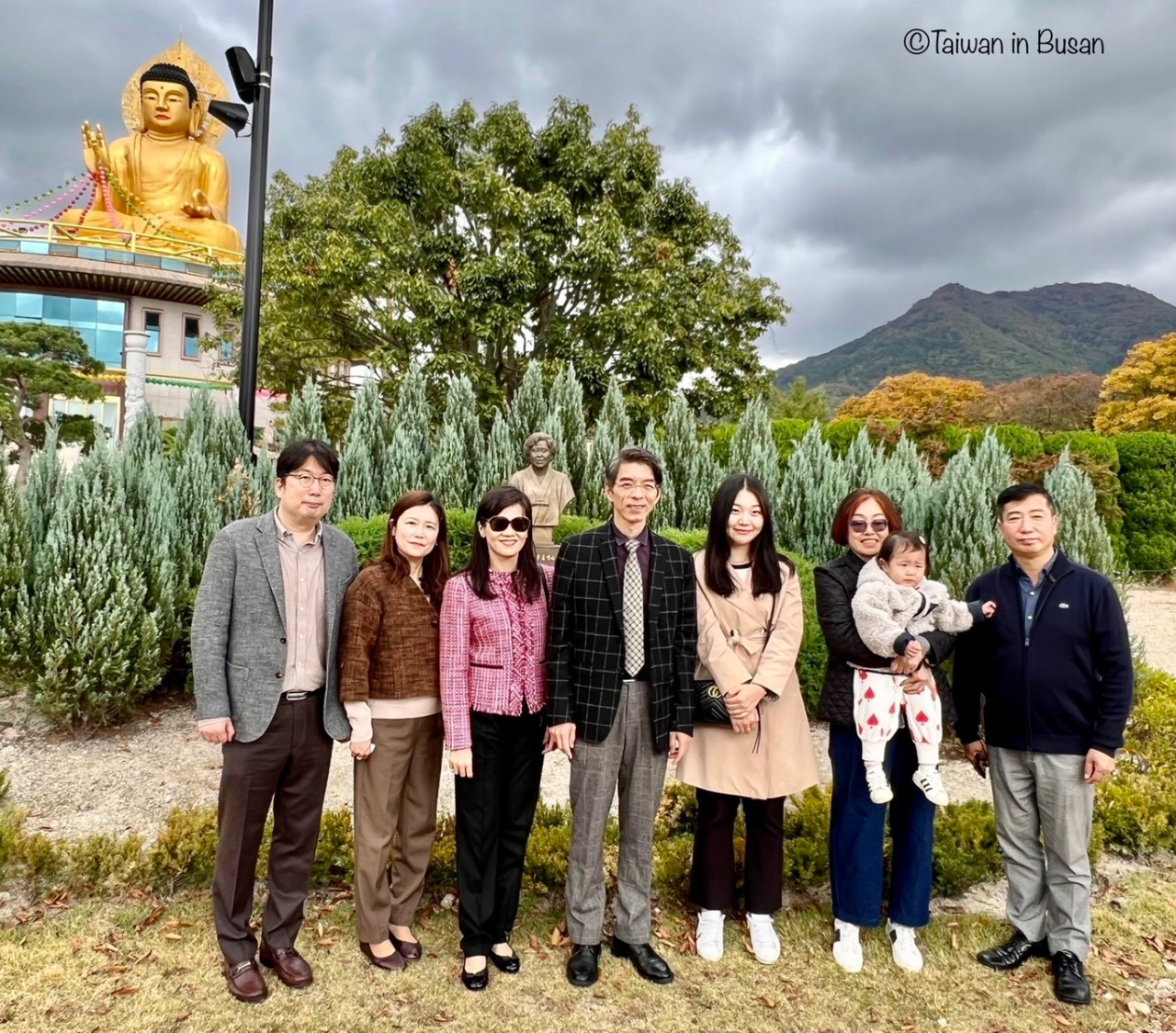 10月30日,本處林處長夫婦偕同仁受邀出席釜山弘法寺主辦的《釜山書畫108人邀請展─韓臺國際書藝交流展》開幕典禮,欣賞來自台灣54位、韓國54位共108名書法家的揮毫作品,以及台灣最大佛教聖地之一佛光山寺開山始祖星雲法師贈送的墨寶《人間佛教》,期許台韓關係及文化交流能夠持續順遂發展。 今年時逢大韓佛教曹溪宗弘法寺開山19週年、創建主河道明華菩薩冥誕100週年,弘法寺特別舉辦台韓書藝交流展,並延續去年舉辦的《釜山書畫108人邀請展》,以期佛法遠播及世界和平。此次邀請釜山及韓國書藝團體總聯合會旗下著名書法家,以及台灣中國書法學會書法家盛大舉辦。擔任此次展覽執行總務的金尚智書法家也以作品《如蓮》參展。 展覽開幕儀式原訂於弘法寺前大草坪上舉行,並邀請書法家一同揮毫表演,但因遇雨改於莊嚴的大雄寶殿內從簡辦理。開幕典禮由弘法寺住持深山大師、林處長夫婦、國會議員白宗憲、金井區廳長金在允及區議長崔峯煥、韓國書藝團體總聯合會會長金聖在、釜山華僑協會副會長叢培錦夫婦、慶州華僑協會副會長高祿財等來賓,以及書法家們等逾一百人參與,場面隆重。 林處長致詞時除祝賀展覽順利、期許台韓未來在佛法及書藝持續深化交流,並代表中華民國政府就10/29發生在首爾梨泰院的不幸意外事件,向韓國政府和人民表達深切哀悼與慰問。金井區廳長金在允回應表示,本週全國哀悼期間取消一切慶典活動;國會議員白宗憲則允諾督促政府致力救助傷患,並深刻通盤檢討,以免再重蹈覆轍。深山住持則表示,在哀悼期間舉辦此活動,心情複雜,願逝者安息、傷者康復,並希望能藉由書藝撫慰生者及罹難者家屬。 弘法寺屬於韓國佛教曹溪宗,同時也是台灣佛光山在釜山的分院,以擁有韓國最大的21公尺高坐佛像「金銅阿彌陀大佛」而馳名。寺院被金井山與鐵馬山環繞,並有水營江守護,呈現佛教經典中蓮華藏世界般的景色。今年是創建主河道明華菩薩冥誕100週年,於不久前的第32回虛空摩旨弘法波羅蜜祭中,也舉辦了紀念銅像揭幕儀式。 《釜山書畫108人邀請展─韓臺國際書藝交流展》,自10月17日起至11月19日在弘法寺戶外草地藝廊展出。各位朋友如果這段期間前往弘法寺虔誠佛禮時,可以順道欣賞書藝作品、陶冶情操、昇華心境。 Photo credit: 韓國佛教曹溪宗弘法寺