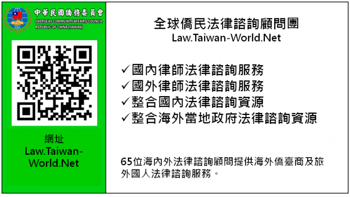 中華民國(台灣)僑務委員會「全球僑民法律諮詢顧問團」正式上線