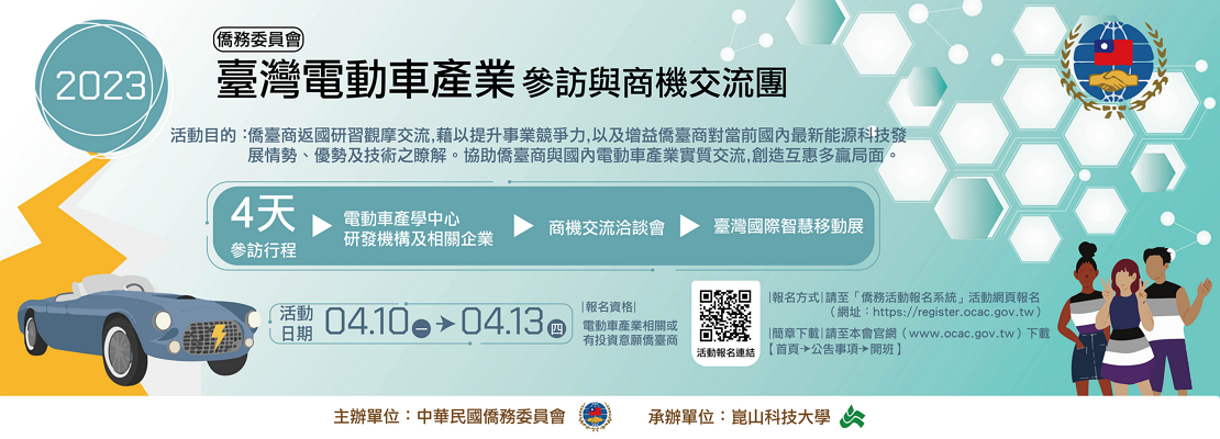 僑務委員會「2023年臺灣電動車產業參訪與商機交流團」報名須知