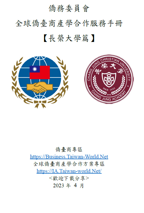 「全球僑臺商產學合作服務手冊【長榮大學篇】」已公告於 (IA.Taiwan-World.Net) 及僑委會官網「僑臺商專區」(https://Business.Taiwan-World.Net),歡迎海外僑臺商企業瀏覽運用。