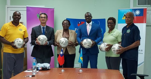 駐聖露西亞陳家彥大使很高興能代表 中華民國足球協會 CTFA ,提供運動物資給聖露西亞社區青年,聖露西亞由青年發展暨體育部長賈西米爾代表接受,希望能鼓勵青年投入體育活動,幫助當地社區改善青年輟學、失業與幫派問題。