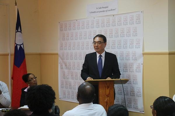 In his remarks, Ambassador Shen expressed his appreciation to the volunteers for travelling all the way from Taiwan to render medical service to the local people. He stated since the twinning agreement was signed between Changhua Christian Hospital and St. Jude Hospital, there has been a steady flow of personnel exchange, and over the years more than 120 medical experts from Taiwan performed volunteer work at St. Jude Hospital, offering services to over 6,000 patients in the south. Ambassador Shen also reaffirmed Taiwan’s commitment to assist Saint Lucia in the area of medical care.