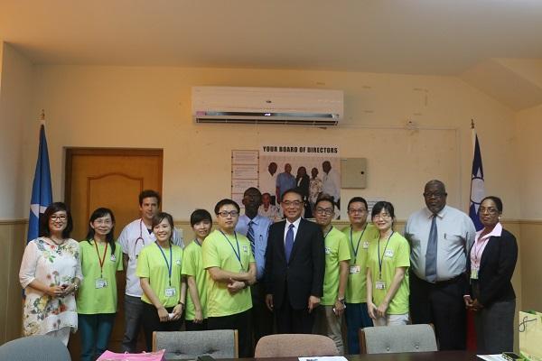 H.E. Ambassador Douglas C.T. Shen (middle in the front), Permanent Secretary of Ministry of Health and Wellness, Mr. Felix St. Hill (left eight), and Chief Executive Officer of St. Jude Hospital (right one) took picture with Medical Volunteers from Changhua Christian Hospital