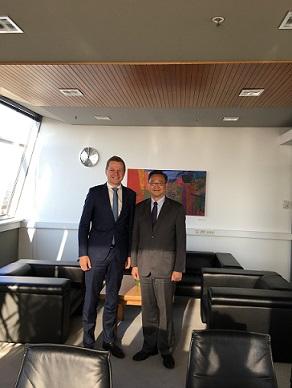金大使轄訪立陶宛於9/20拜會首都威爾紐斯市市長Remigijus Simasius洽談雙方未來合作事項