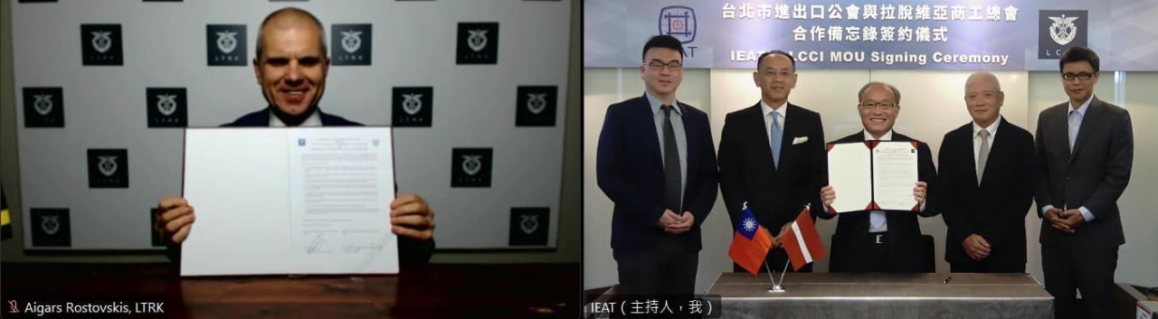 經過本處兩個月來密切聯繫協調,以及台北市進出口商業同業公會(IEAT)的支持與協助,終於在7月14日與拉脫維亞商工總會(LCCI)舉行線上會議簽署合作備忘錄,由黃文榮秘書長及Aigars Rostovskis會長代表兩會簽署,李大使及外交部歐洲司呂世凡副司長也應邀觀禮。這項協議是台拉?? ??之間首個由兩國商貿產業領導團體簽署的合作備忘錄,也是兩國民間經貿合作及產業交流的重要里程碑。
