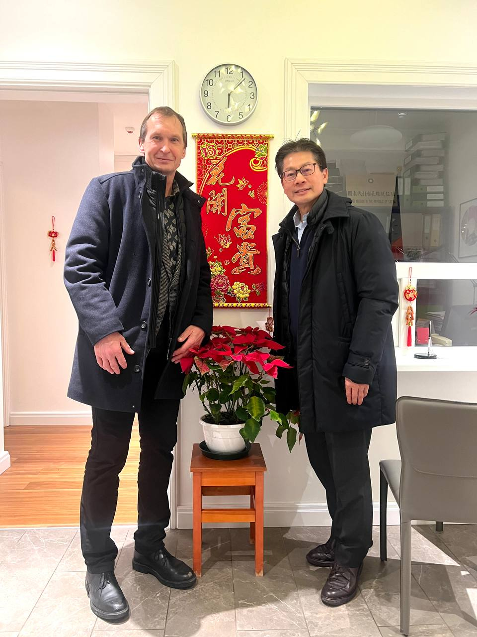 愛沙尼亞國會議員楊森(Jüri Jaanson,6屆奧運划船選手、兩面銀牌得主)日前訪問里加拜會李大使,雙方就俄國入侵烏克蘭、台海和波羅的海海底基礎設施面臨灰色地帶攻擊,以及強化台愛雙邊關係等問題深入交換意見。