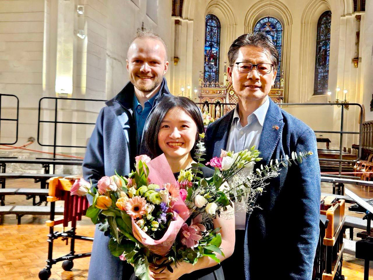 李大使與台灣音樂家余沁芸女士及拉脫維亞夫婿合影
