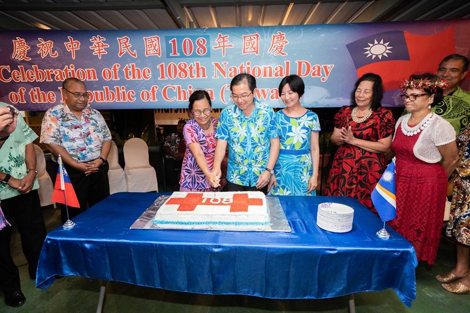 本館於本(108)年10月10日傍晚在饒富島國風情的馬紹爾飯店池畔餐廳盛大舉辦國慶酒會,馬國海妮總統伉儷、三位前總統、內閣部長、參議員、傳統領袖及僑界共計約200人出席,場面溫馨歡樂,充滿慶典氛圍。