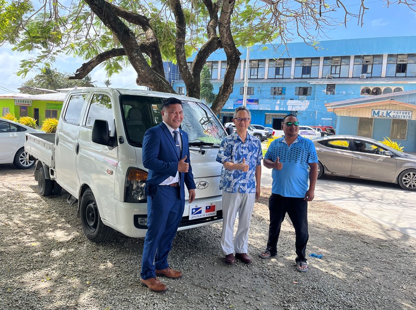 駐馬紹爾群島共和國大使館夏季昌大使代表中華民國(台灣)政府贈交乙輛二手貨車,以利馬國用於防治並解決馬久羅(Majuro)環礁Ajeltake村莊椰子甲蟲害。