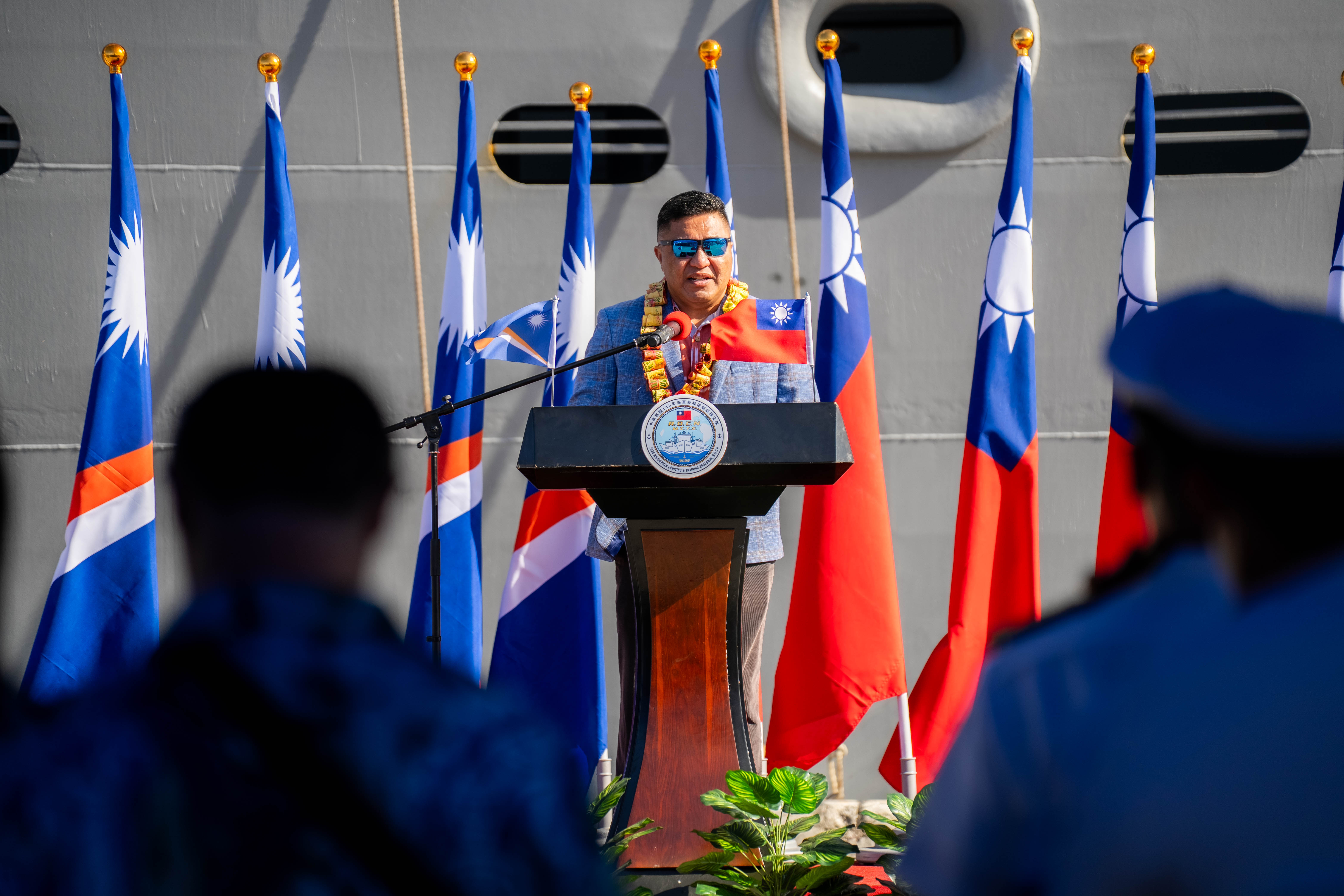 我國海軍敦睦遠航訓練支隊,在支隊長陳明峯少將率領下,於本(115)年3月10日至3月12日訪問馬紹爾群島共和國。今年是敦睦支隊第20次訪問馬國,並選擇馬國作為年度遠航首站,象徵兩國緊密的邦誼。 支隊抵達後,由馬久羅環礁政府舉辦歡迎儀式迎接。訪問期間,陳支隊長率領重要幹部分別拜會馬國海妮(Hilda C. Heine)總統、國會議長瓦西(Brenson Wase)及馬久羅環礁政府代理市長Jina David等政要。海妮總統亦親臨陳支隊長主持的艦上酒會,國會正副議長、酋長、多位內閣部長、多位參議員及僑胞等亦踴躍參與,本館徐蔚民大使皆全程陪同。 敦睦支隊每次訪問馬國均獲當地民眾熱烈迴響,除支隊開放民眾參觀磐石艦台灣特色展區,展現台灣軟、硬實力外,本次支隊亦在教育文化中心(ECC)舉辦棒球用品捐贈儀式,本次捐贈的棒壘球用具如球棒、各式手套、捕手護具、打擊頭盔、棒球及壘包底座等,皆符合國際標準,支隊已連續4年捐贈體育用品予馬國教育部,馬國教育部長Gerald Zackios於儀式特別感謝支隊長期支持,讓馬國學童能享受運動的樂趣。 儀式結束後,海軍官校鼓號樂隊、海軍樂隊、海軍陸戰隊儀隊及海軍陸戰隊莒拳隊更帶來精彩表演,尤其莒拳隊以精湛戰技擊破磚瓦及木板時,驚豔全場,馬國觀眾歡呼聲連連,現場座無虛席。表演結束後,支隊官兵與馬國運動員進行籃球及排球的友誼賽,雙方更因氣氛熱絡主動加賽,展現體育交流能拉近彼此距離。 3月12日早上,敦睦支隊舉行聯合升旗典禮,馬國外交暨貿易部長Kalani Kaneko特別出席致意,並與本館徐蔚民大使致詞歡送支隊,祝福後續航程順利平安。典禮中我國及馬國國旗並肩緩緩升起,展現兩國珍視且深厚的邦誼,典禮結束後,在K外長、馬國參議員David Anitok、外貿部官員、僑胞及館團中心同仁們的熱情歡送下,敦睦支隊啟航前往下一個目的地。