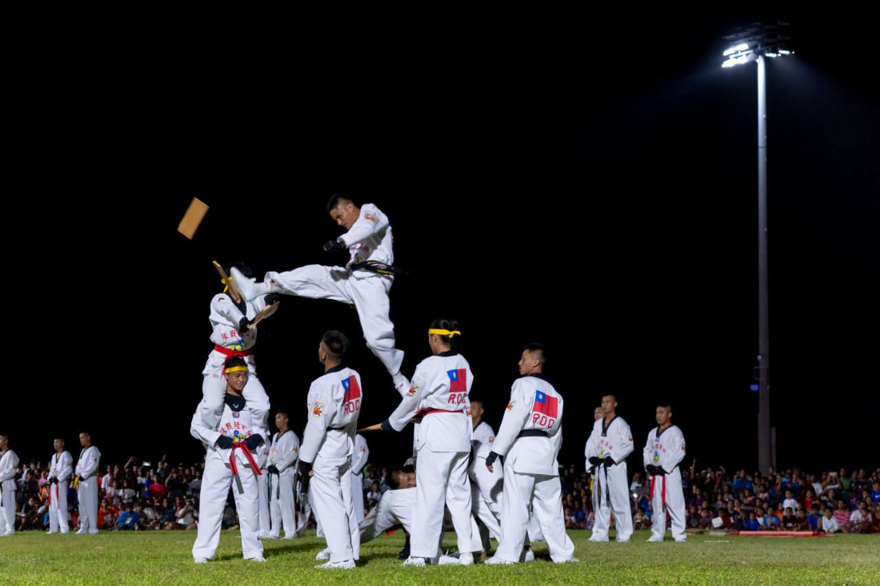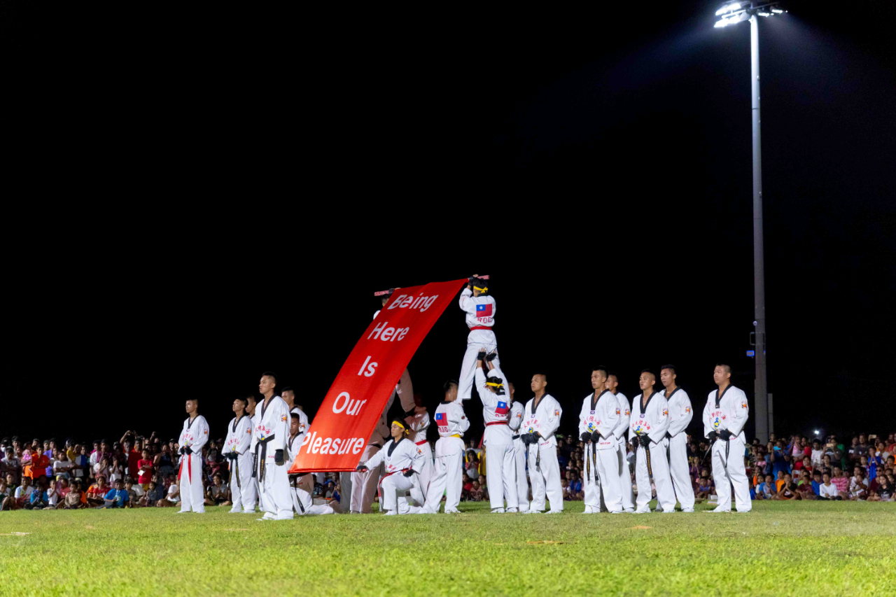 Following the official Constitution Day program, squadron members treated over 500 Marshallese citizens to captivating performances. The Naval Academy Band initiated the festivities with uplifting melodies, followed by a display of precision rifle drill skills by the honor guards, which left the audience in awe. Lastly, the Taekwondo team’s spectacular combat demonstration brought the show to a climax, drawing children to rush to secure the best viewing spots.