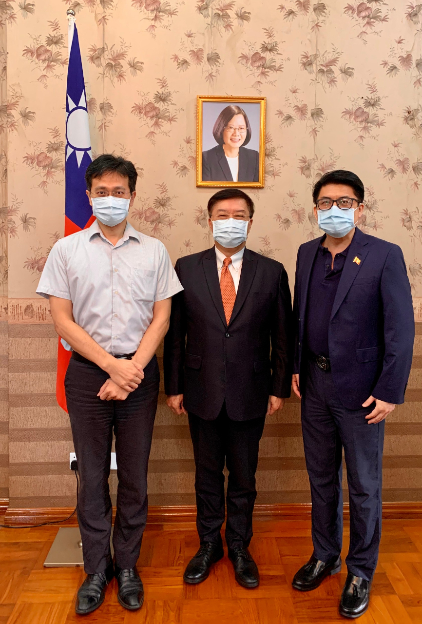 李朝成大使(中)、與林連長經理(右)、陳伯彰組長(左)