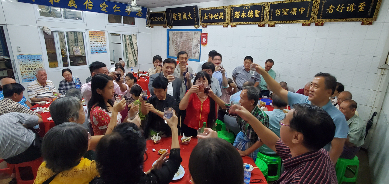 本處李大使應仰光孔聖廟邱龍廈主任之邀請,於6月5日晚間由僑務組組長張文華、移民秘書任曉婷陪同拜會該會館,並與40多名會員進行座談,互動熱絡。