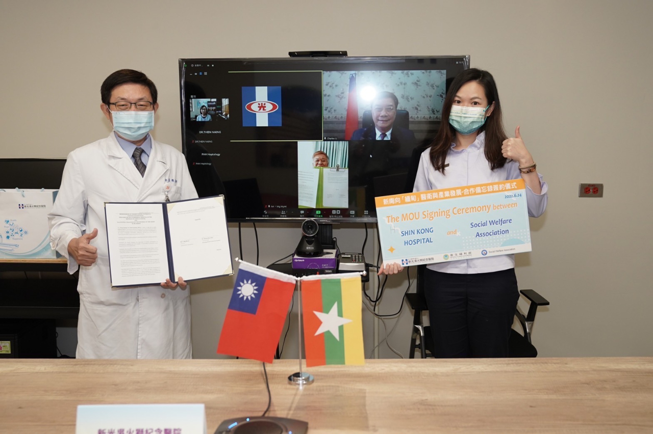 為持續擴大推動臺緬醫療衛生合作,駐緬甸代表處日前促成緬甸「臘戌社會福利會」(Social Welfare Association, Lashio)與新光吳火獅紀念醫院 (Shin Kong Wu Ho-su Memorial Hospital) 簽署合作備忘錄,兩方於6月24日舉行線上簽署儀式,由臘戌福利會主席U Maung Myint與新光醫院國際醫療緬甸小組執行長許榮輝醫師代表簽約,本處李朝成大使、雲郁菁組長線上觀禮。