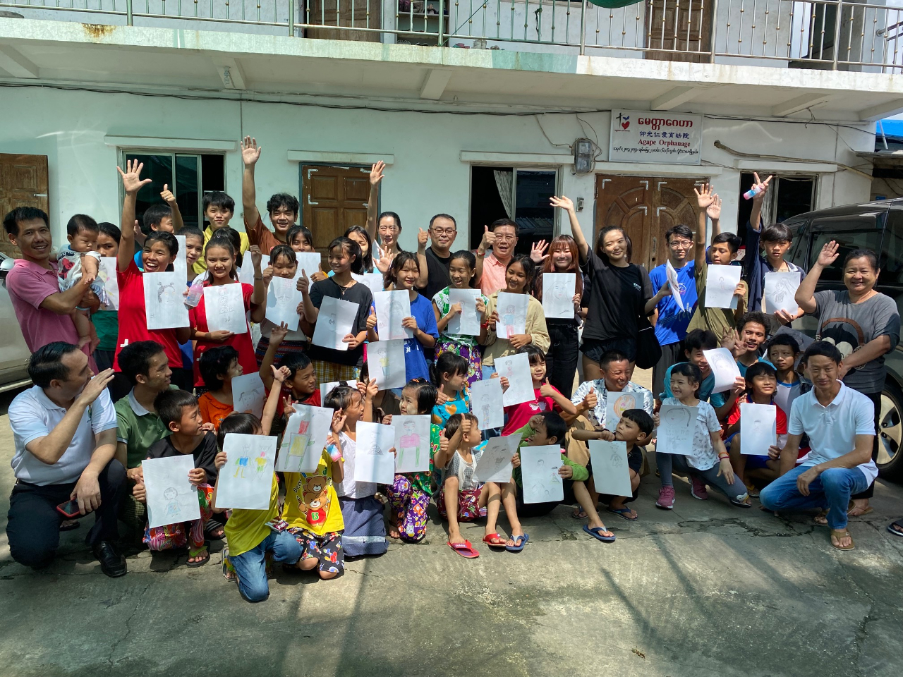 第二場教學活動,係與此間「愛緬基金會」(Chit Myit Tar Foundation)合辦,由趙德仁執行長及此間學生志工等陪同,於10月10日造訪位於仰光蘭達雅(Hlaing Thar Yar)的仁愛育幼院(Agape Charity Children Center),共有37位5至15歲的緬甸學童參與,小學童隨性作畫,展現天馬行空的創意,大獲郭老師讚賞。兩校教學活動相關文具均由此間臺商「仰光第一文教製造有限公司」(Yangon First Stationary Manufacturing Co., Ltd.)贊助提供。該百分百臺資公司於2016年將業務自越南擴展到緬甸,在勃固省設立新廠。