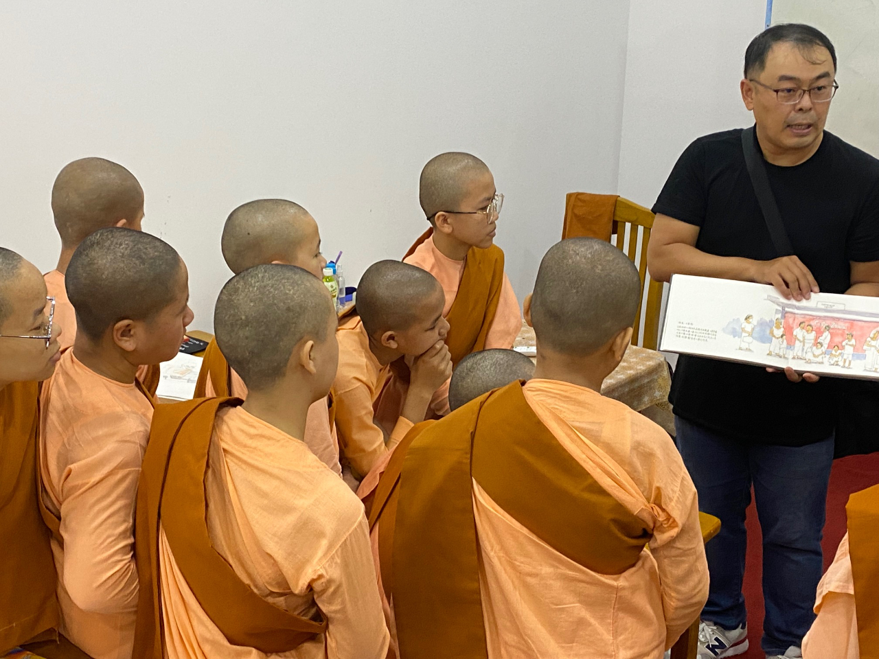 第一場教學活動在仰光郊區Chekavati Buddhist University佛教大學舉辦,並有鄰近的寺廟青少年參與,共計20餘人,郭老師首日示範教學,指導學生如何運用簡單的鉛筆及彩色筆等文具素描,對在場多數女尼大學生而言,可謂是人生的第一場美術課;隔二日再赴該校講評學生所完成的畫作;創校女尼Dr. Chekavati親自接待,感謝駐緬甸代表處安排臺灣畫家蒞校教學,並邀約畫家明年春季再訪仰光擔任駐校畫家,為該校開設藝術課程。