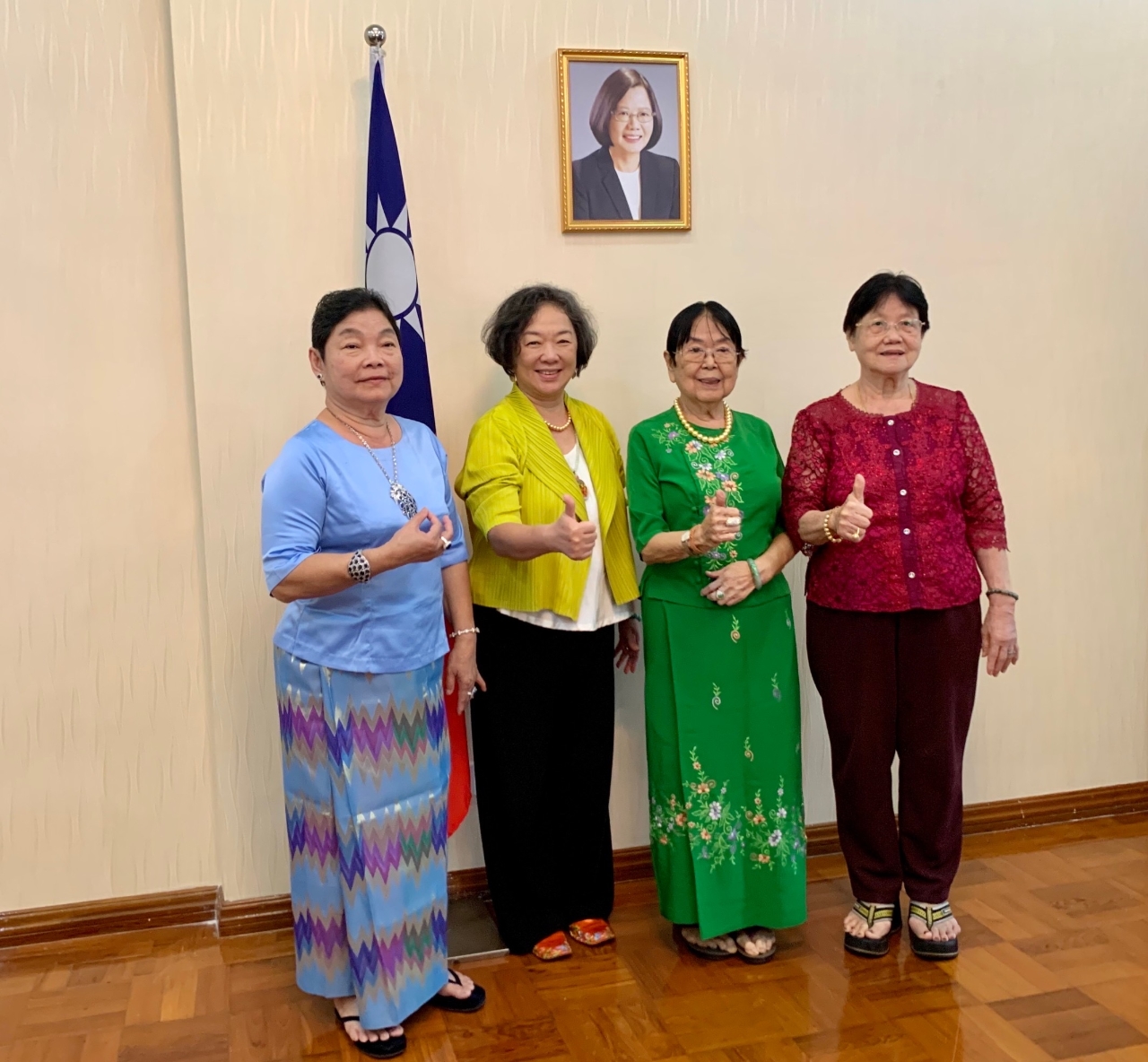 緬華自由青年總社尤福臨理事長、王成志監事長偕副理事長黃榮平、侯金霞、朱美華、李秀珍等人2月24日拜會駐緬甸代表處李朝成大使夫婦,就僑社生活點滴、僑胞經濟、僑社生態、緬甸政情等事項,親切閒話家常。
