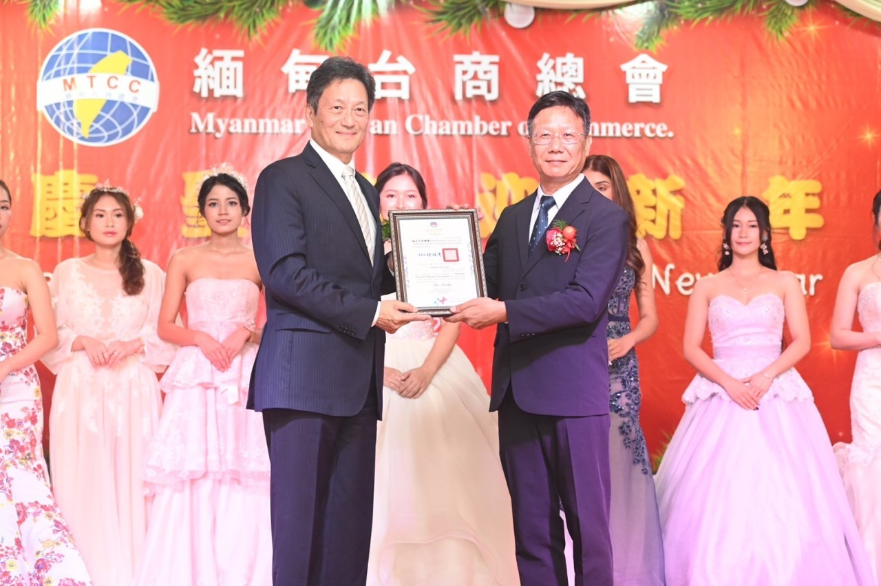 周大使受邀致詞,推崇過去一年中,緬甸雖面臨不少挑戰,但緬甸臺商總會在溫總會長及所有幹部領導下,對外廣結善緣,反映民瘼,對內辦理端午節、父親節、中秋節等多項活動,服務臺商,凝聚僑心,貢獻良多;展望未來,值此長夜將盡,希望降臨的時刻,祝福緬甸臺商平安健康、生意興隆,臺商總會會務蒸蒸日上。