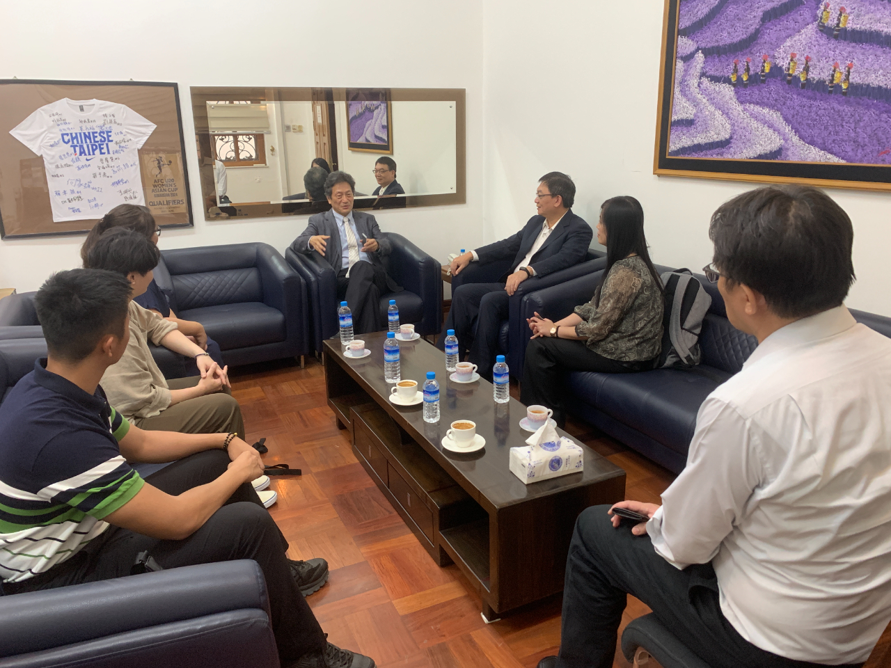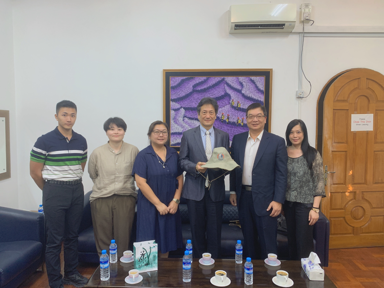 台灣(正崴集團)元杉森林自然資源公司胡惠雲總經理與王韻樺副理,緬甸台商公司RICH GROUP 莊薈渝營運長、羅貴文行銷長以及在地非營利組織希望之苗曾震承品牌長,連袂於5月13日拜會駐緬甸代表處周中興大使,就國際與台灣碳權交易發展,以及在緬合作等議題交換意見。