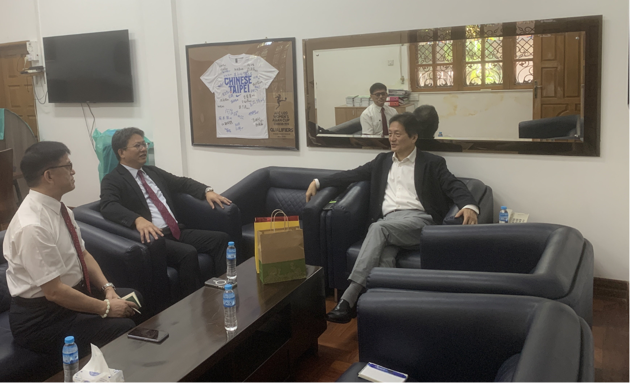 第一銀行仰光代表辦事處陳師群首席代表與華山分行陳榮澤經理(前首席代表),於10月28日拜會駐緬甸代表處周中興大使,就金融市場大勢以及在緬營運現況等議題交換意見。