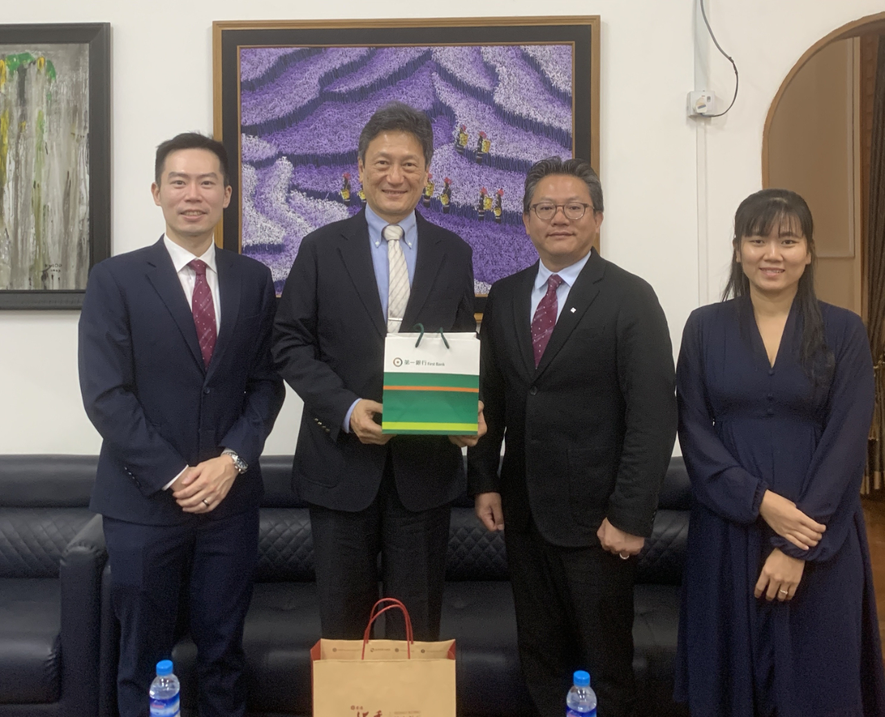 會中,兩位訪賓表示第一銀行響應政府新南向政策,積極布局東南亞市場多年,並分享近年在緬甸及泰國、越南與寮國等海外據點的營運概況。另提到,各國赴台的留學生畢業返鄉後,常是海外台資銀行及台商的重要人才來源及招攬對象,對台企融入當地頗有助益。