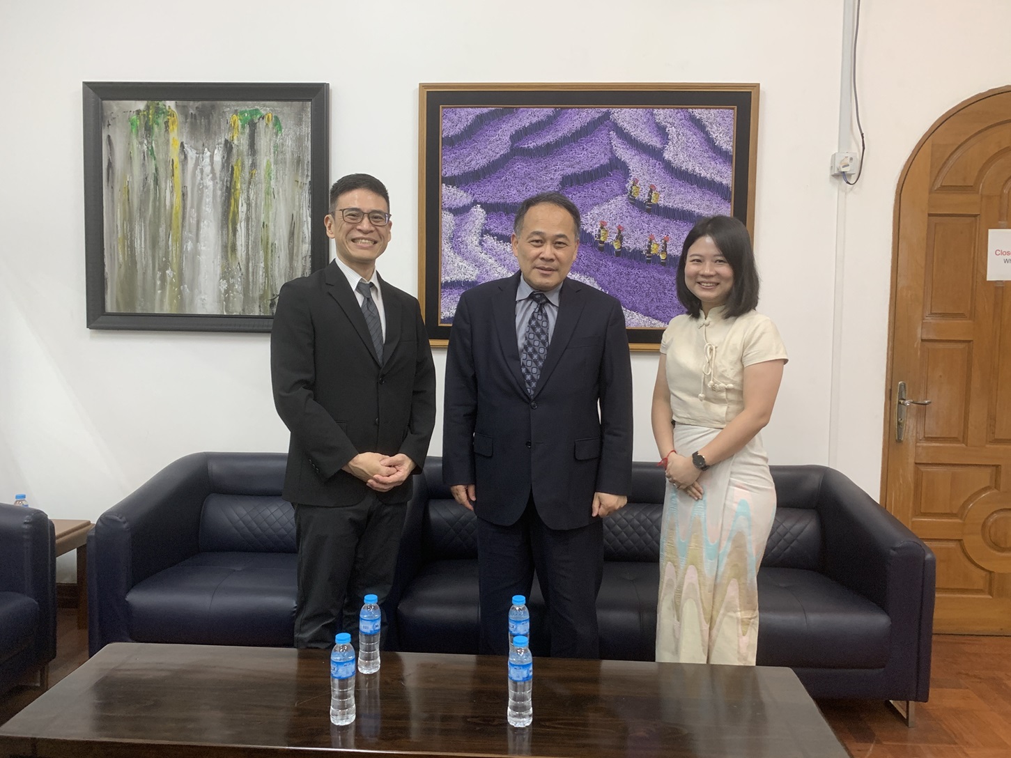 玉山銀行仰光分行林君威行長於本(114)年10月13日拜會本處黃敏境代表,就緬甸當前政經局勢、金融環境及在緬台資企業營運情況等事項,廣泛交換意見。