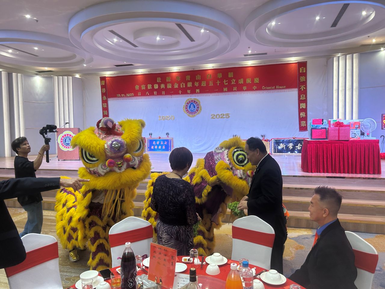 緬華自由青年總社於本(114)年11月28日晚間在仰光Oriental House餐廳舉行75週年社慶聯歡會,尤福臨理事長感謝緬華各僑社代表近500人到場參加,駐緬甸代表處黃敏境代表夫婦與僑務組林冠宏組長亦前往祝賀。
