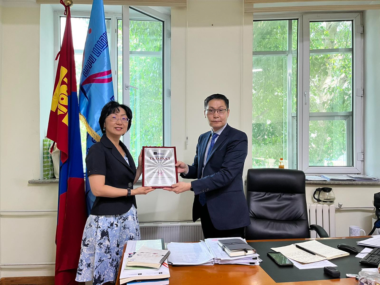 駐蒙古代表羅靜如於本(6)月12日在本處捐贈由臺灣「普賢教育基金會」與「曹仲植基金會」提供臺灣製輪椅及醫療輔具予蒙古身障發展總局,傳達臺灣對蒙古身障人士福祉的關心。希望受贈的蒙古身障朋友因此行動更安全、生活更便利。