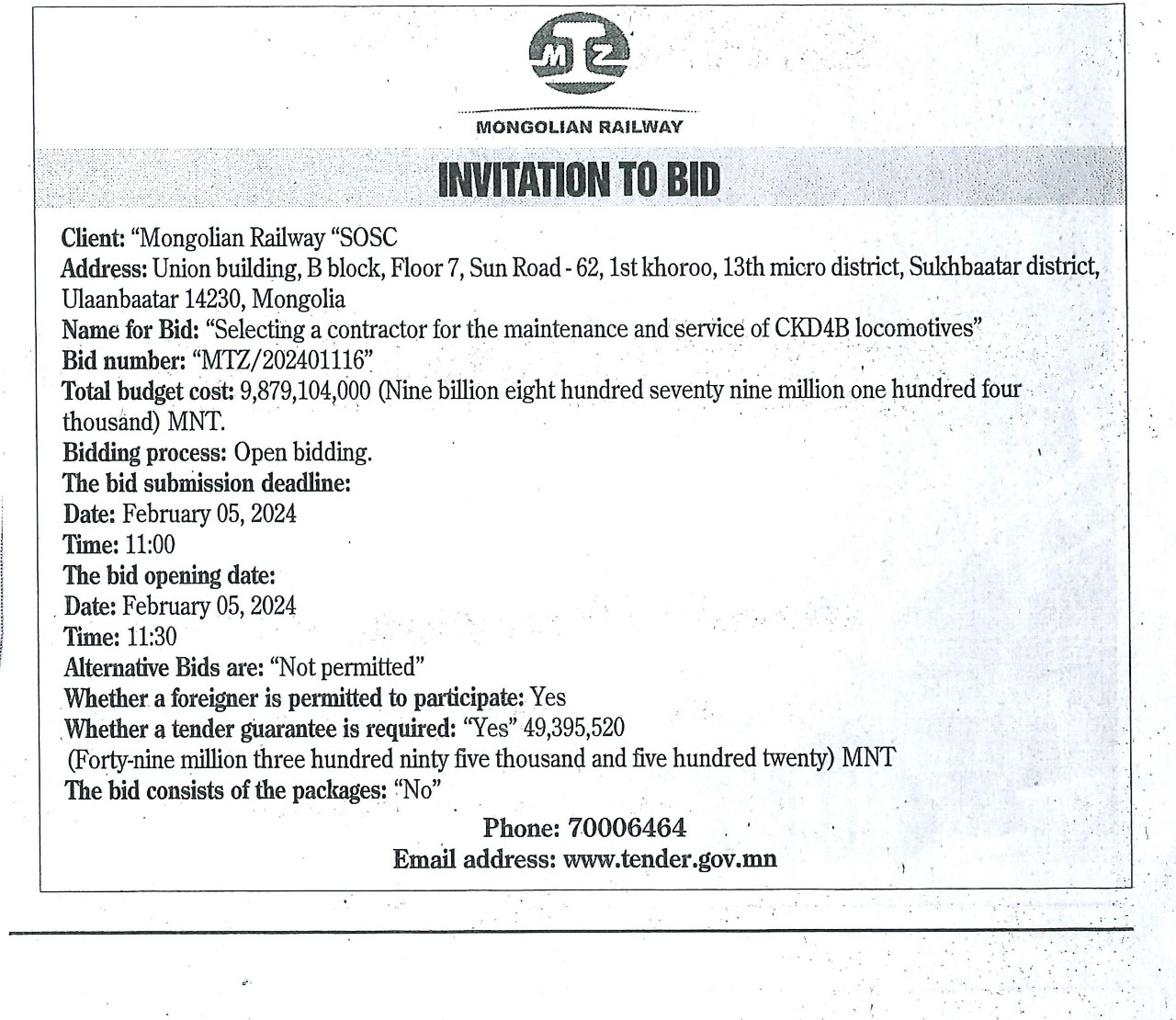 The bid will be opened at 11:30 a.m. on February 05, 2024.