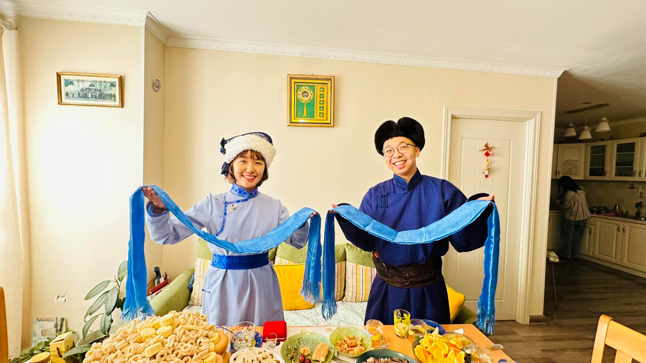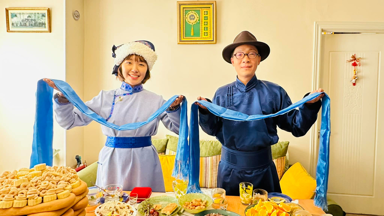 白月節:蒙古人會一家一家拜年 Цагаан сараар Монголчууд айлд очин золголт хийдэг.