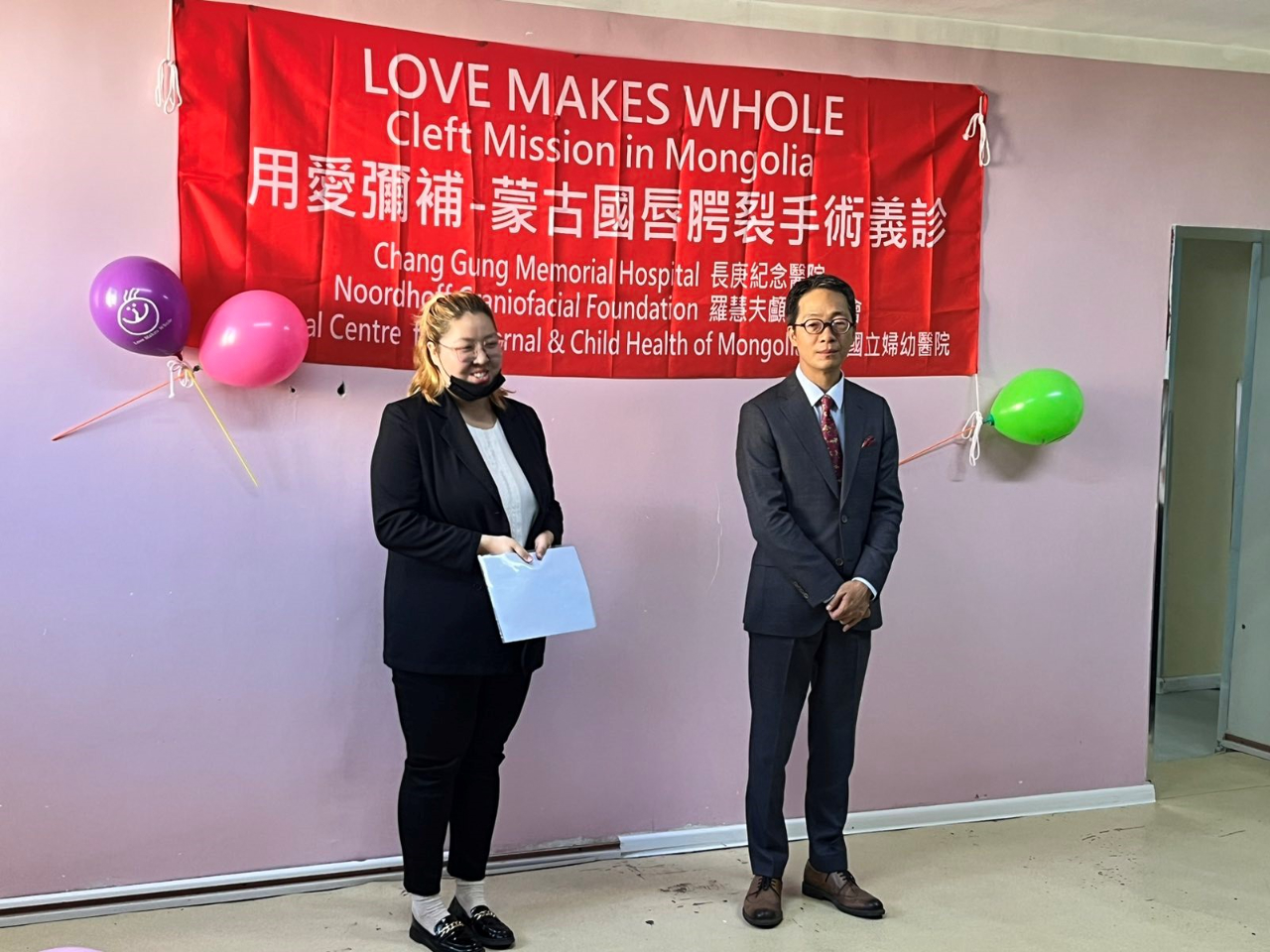 為持續協助蒙古唇腭裂兒童,台灣財團法人羅慧夫顱顏基金會與台灣長庚醫院2024年8月25日至31日來到蒙古國立婦幼醫院舉辦「愛心無國界:2024蒙古國唇腭裂手術義診」,並於8月29日舉辦感恩茶會,邀請台灣駐蒙古代表王凱右出席見證台灣愛心在蒙古發揚光大。