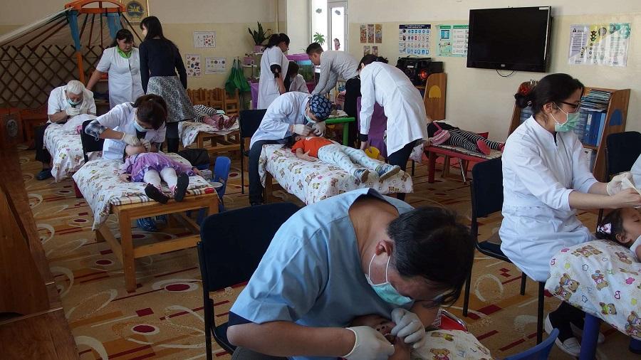 「中華民國牙醫師公會全國聯合會」訪問團於4月12日及13日在烏蘭巴托市為當地三家幼稚園的學童進行預防蛀牙免費服務,也為本(106)年臺灣醫療院所及慈善公益團體對蒙古的義診活動揭開序幕。