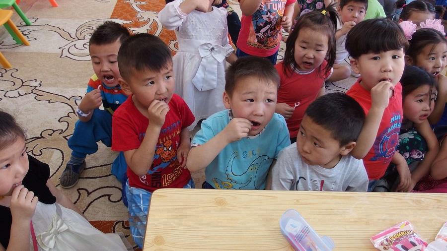該會此次與「臺灣家庭暨兒童扶助基金會蒙古分事務所」及蒙古牙醫師公會合作,安排團員前往位於烏蘭巴托市郊「臺灣家扶村」內的第190幼稚園,以及由家扶捐款協助整修教室的第34與第71兩所幼稚園,為該三所幼稚園總計750多位學童進行塗氟護牙工作,及早預防蛀牙。