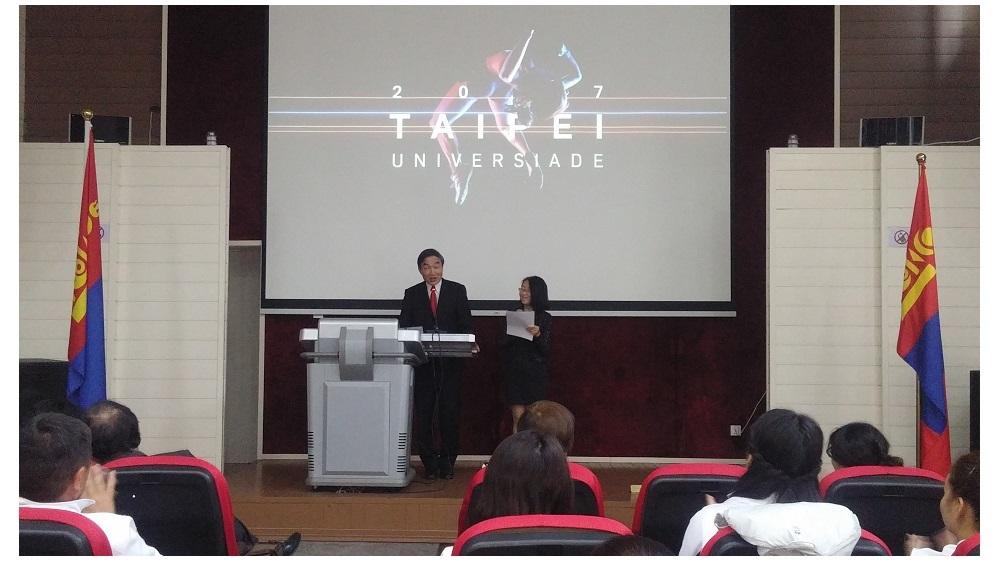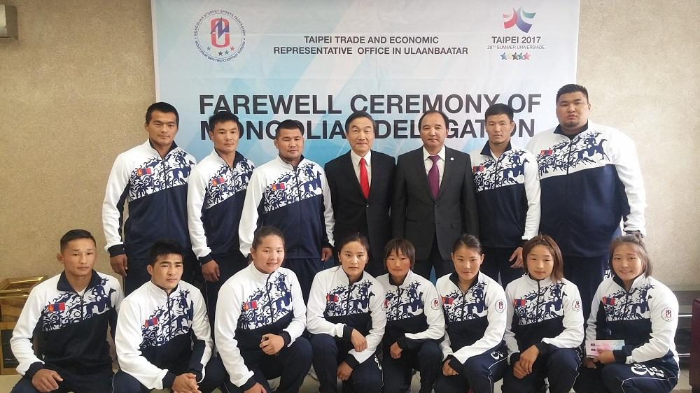 本項歡送儀式由本處贊助,與蒙古教文科體部以及蒙古學生運動聯盟(Mongolian Student Sports Federation)共同舉辦,蒙古學生運動聯盟秘書長、也是此次世大運蒙古代表團團長的JARGALSAIKHAN. D曾訪臺十多次,對臺灣既熱愛又熟悉,在致詞時除簡報臺北市的觀光特色、世大運場館及選手村安排等事宜之外,特別感謝本處在該協會規劃組隊赴臺及籌辦相關活動過程中所提供的協助。